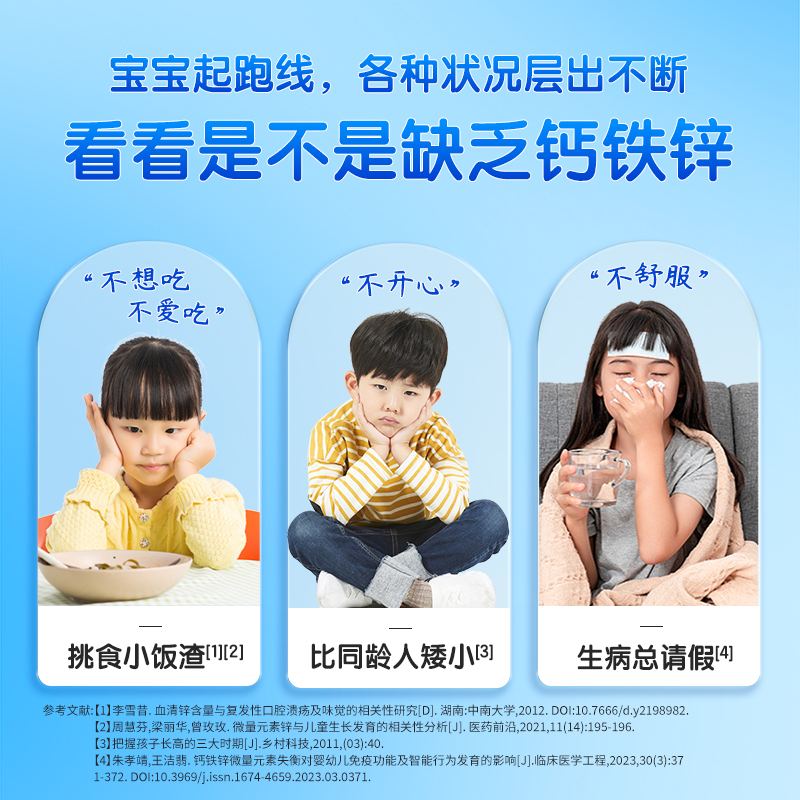 哈药牌钙铁锌口服液90支儿童补液体钙三精蓝瓶葡萄糖酸锌钙口服液