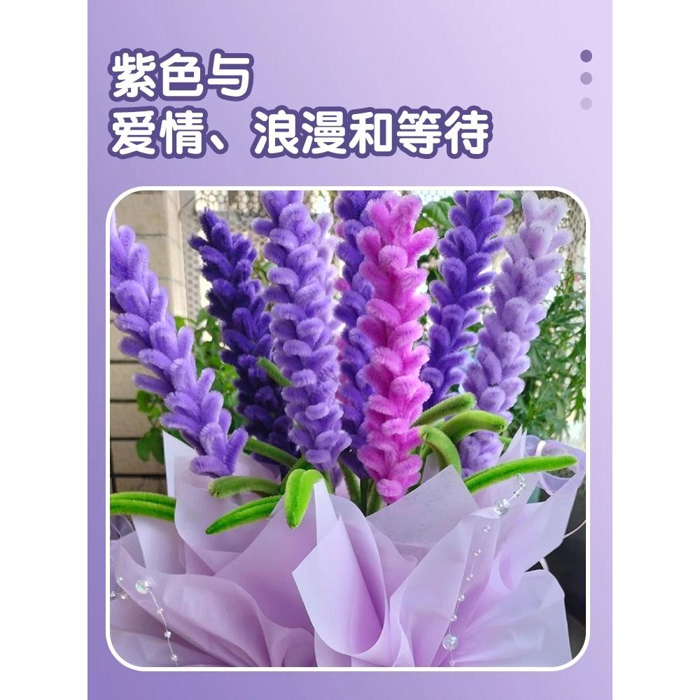 儿童扭扭棒薰衣草柿柿如意郁金香风铃百合花向日葵紫色系花束手工制作diy材料包毛根扭扭棒网红紫色花杆批发