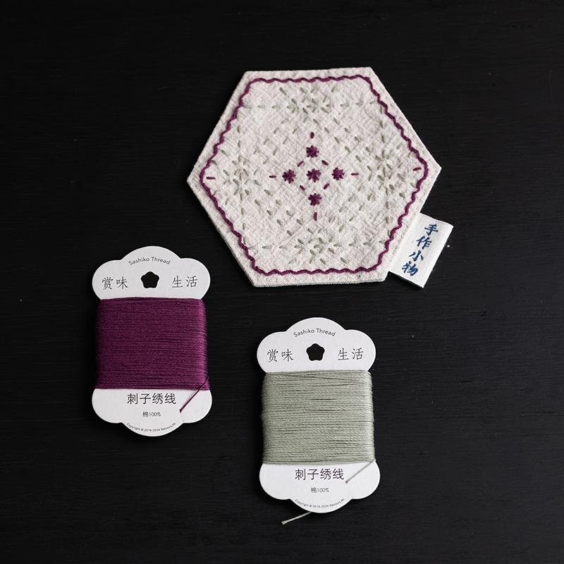 刺子绣茶席材料包 六边形杯垫棉麻布料手工DIY新手入门送礼送朋友,四川 绵阳