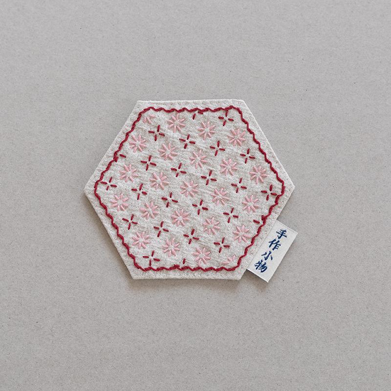 刺子绣茶席材料包 六边形杯垫棉麻布料手工DIY新手入门送礼送朋友