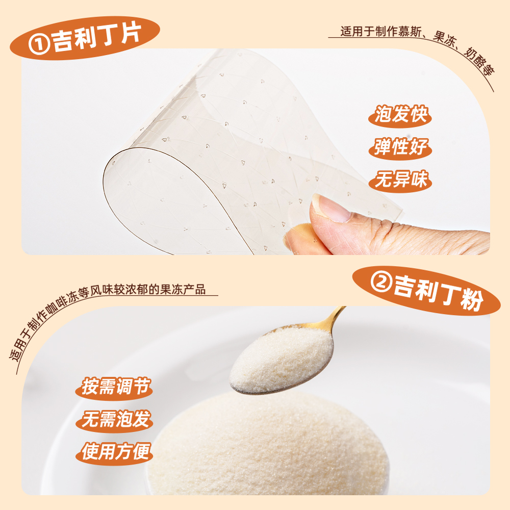 百钻吉利丁片套餐 家用食用明胶粉白凉粉 烘焙奶酪棒慕斯蛋糕材料,湖北 宜昌