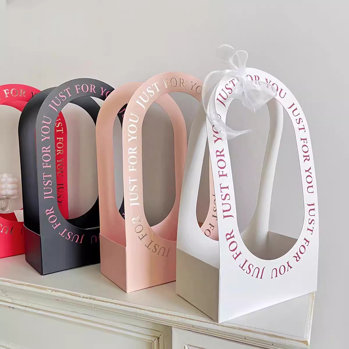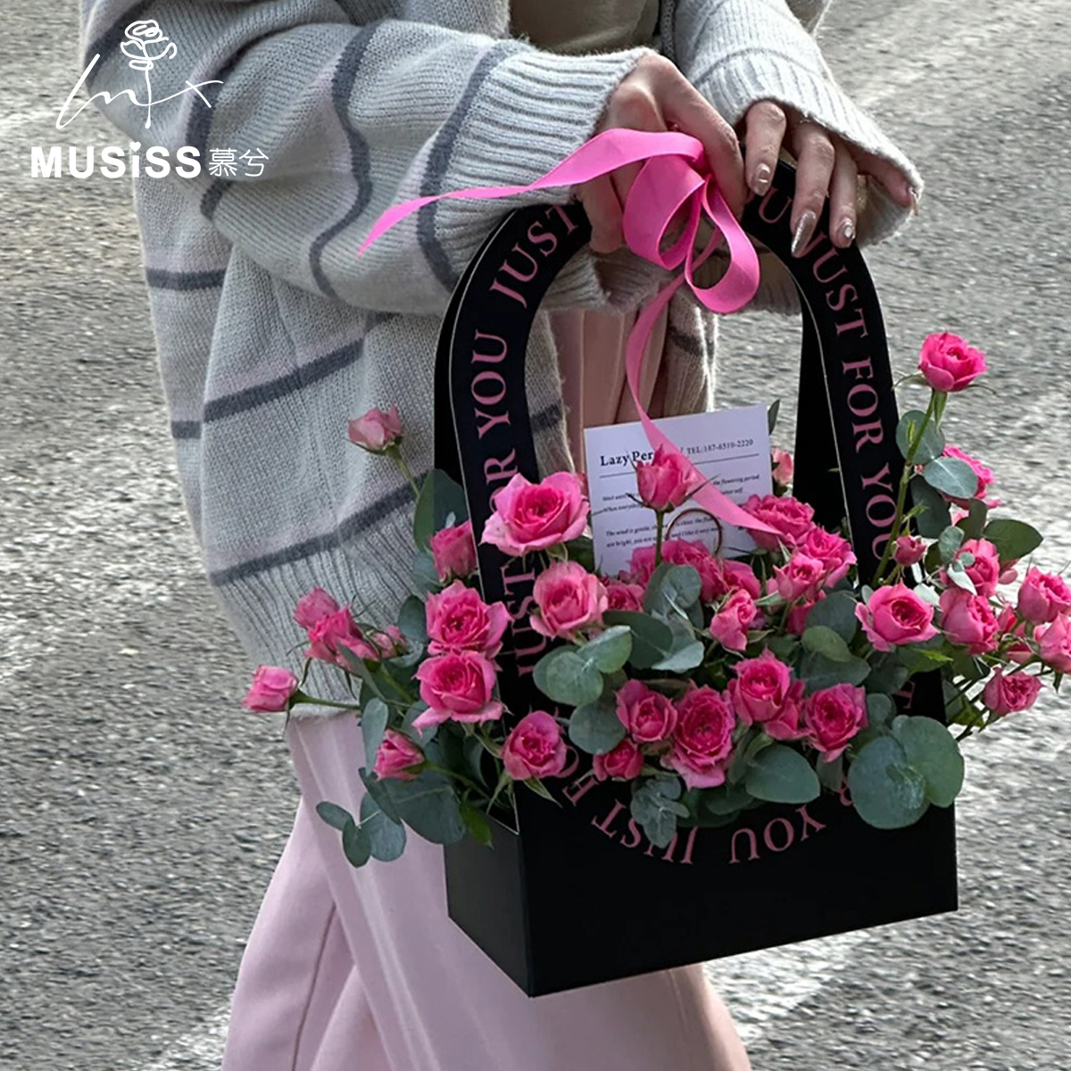 玫瑰鲜花手提花盒花篮小提篮鲜花包装盒花艺插花束diy材料包装盒
