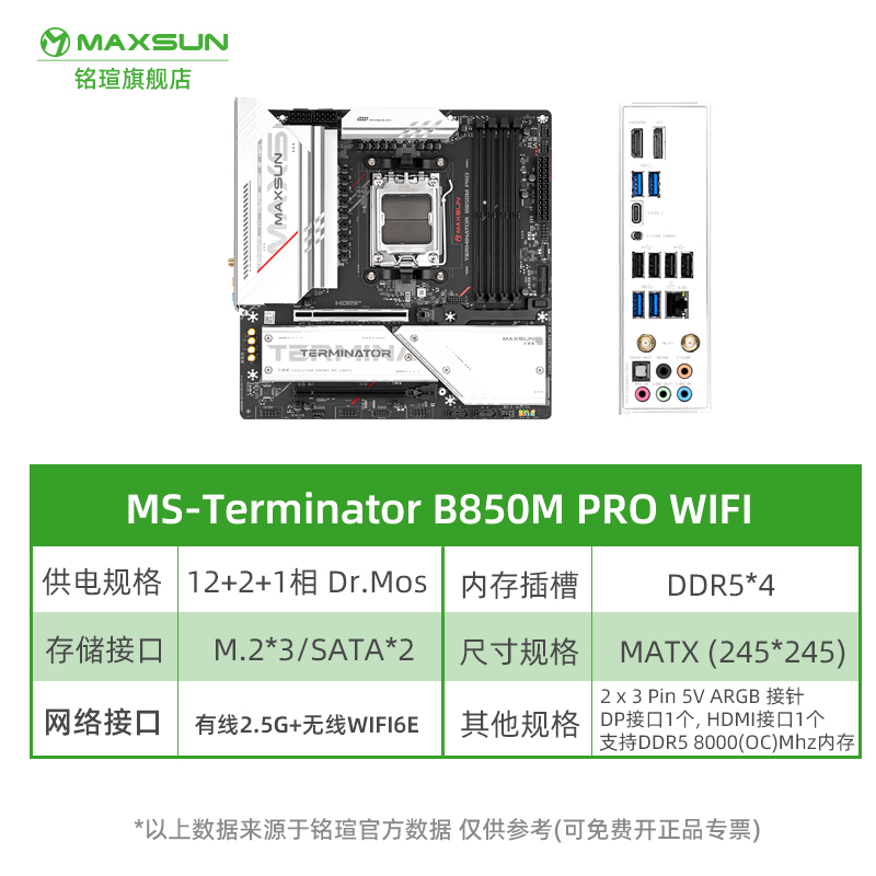 铭瑄终结者B850M PRO DARK WIFI主板D5台式机电脑B650M 固态套装,上海