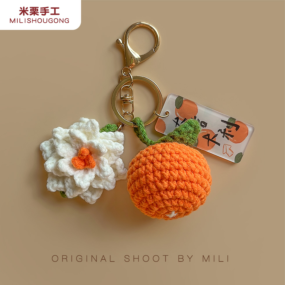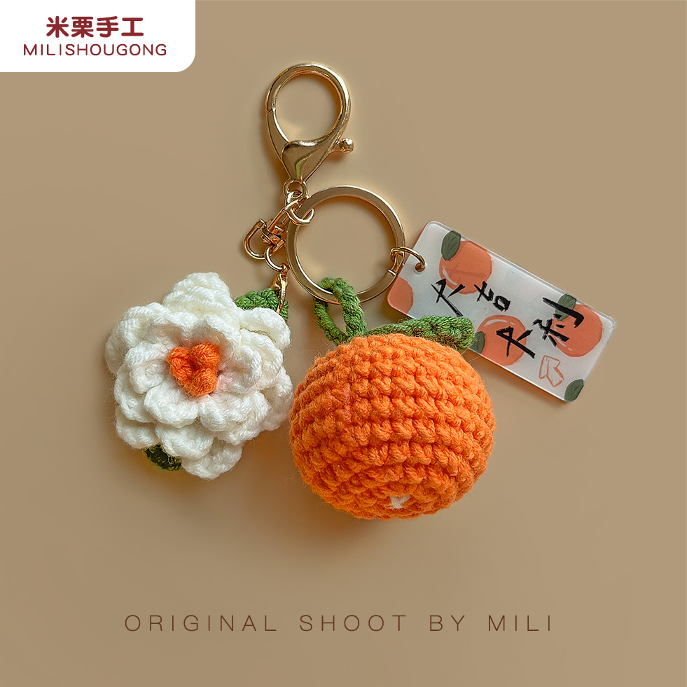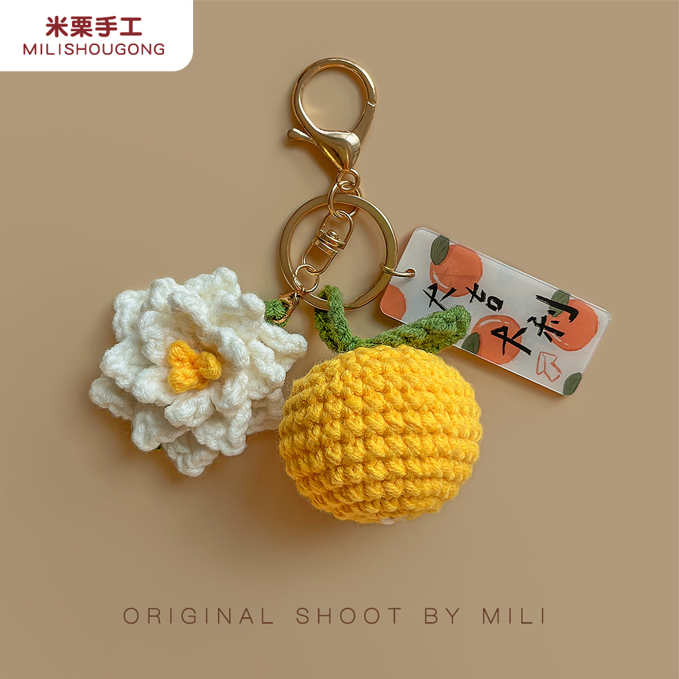 非成品/柑橘栀子花山茶花/手工diy毛线钩织编织材料包/钥匙挂件