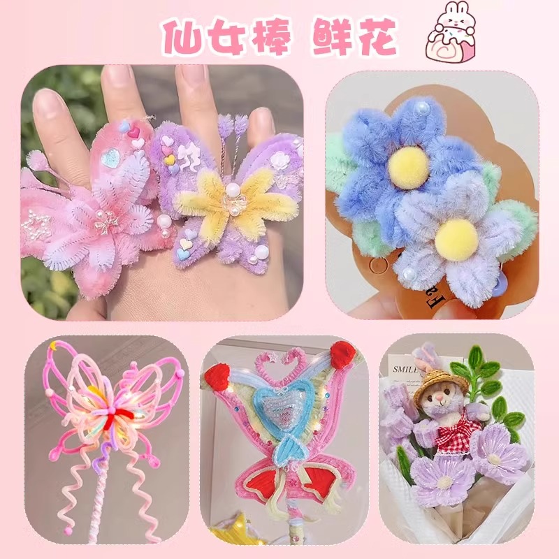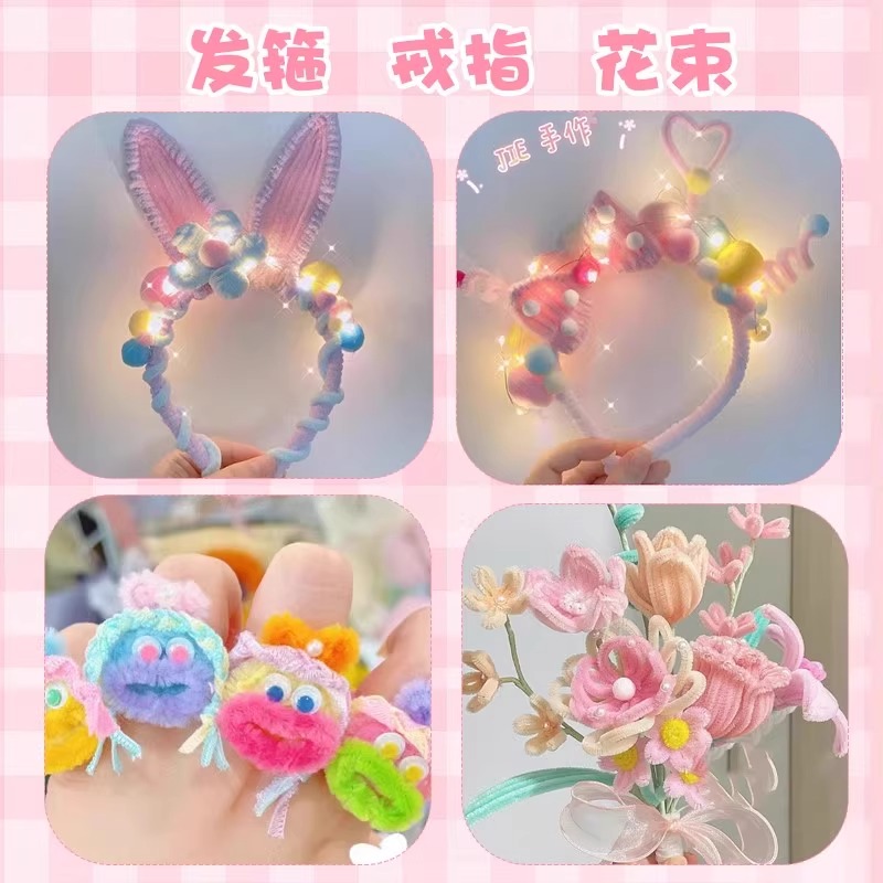 加密扭扭棒花束手工diy材料幼儿园扭扭棒发夹马卡龙彩色毛根妞妞棒套装手捧花编织花束工具儿童发箍发簪礼物,湖北 武汉