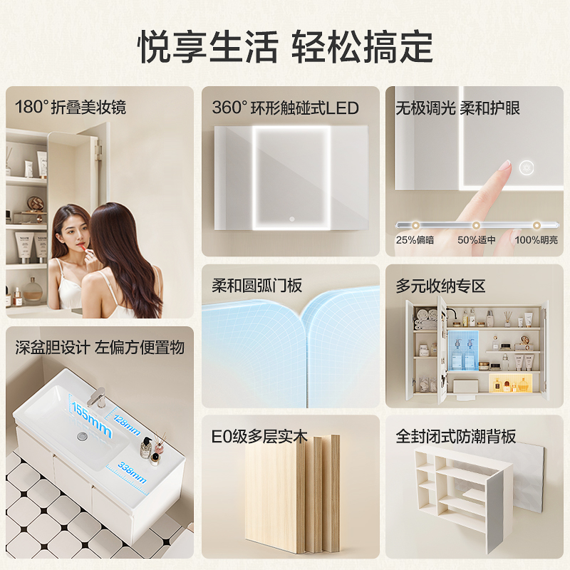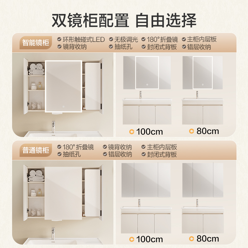 [直播间闪降]恒洁浴室柜组合卫生间陶瓷一体盆洗漱台折叠镜洗脸盆