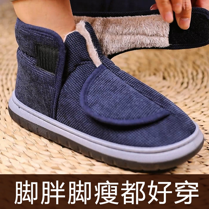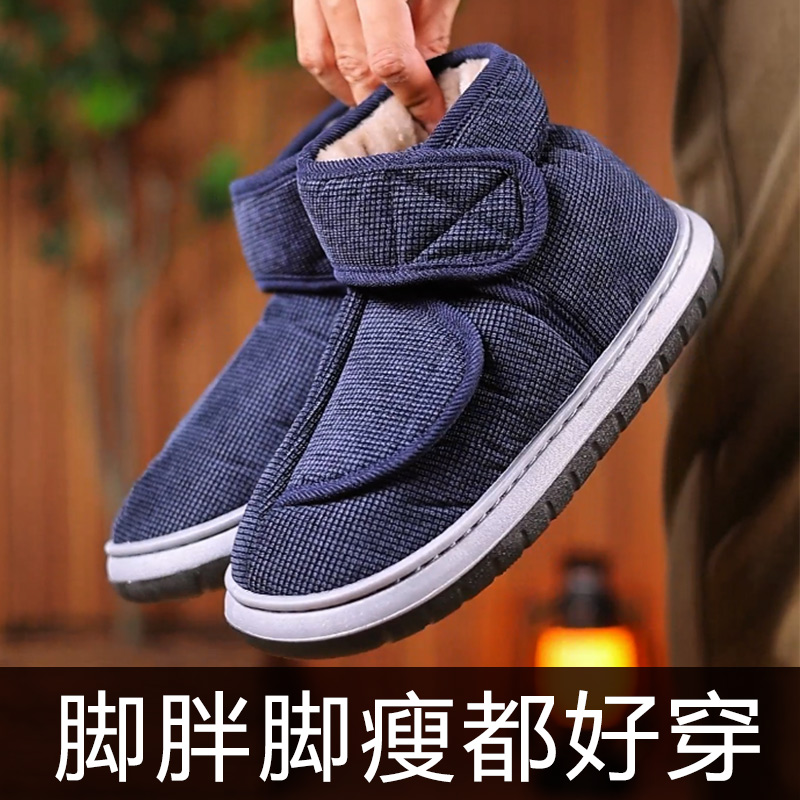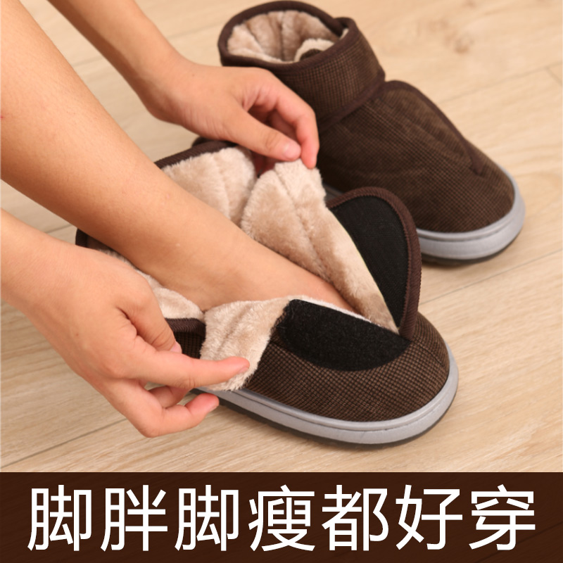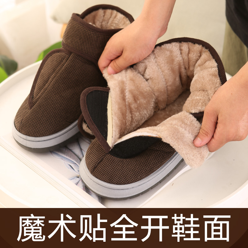 老人加厚保暖防滑毛绒棉拖鞋高帮包跟男女冬季棉鞋脚肿脚宽穿居家