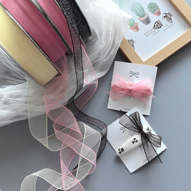 韩国进口饰品气质轻薄细包孔纱欧根纱手工diy发夹娃衣宠物夹丝带