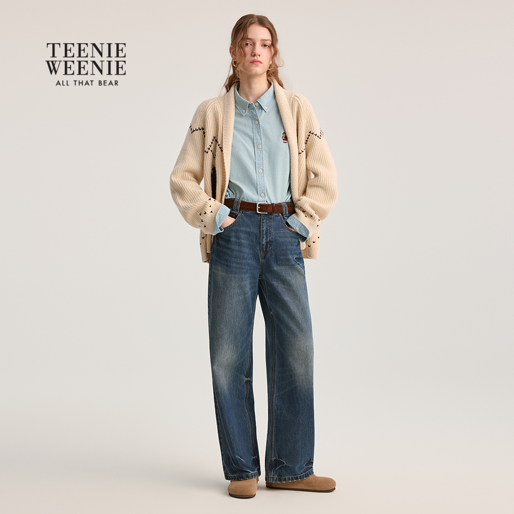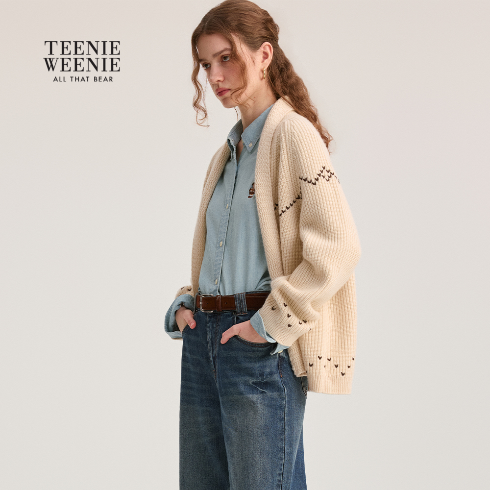 【含绵羊毛】TeenieWeenie小熊女装毛针织衫2025秋季大熊宽松开衫