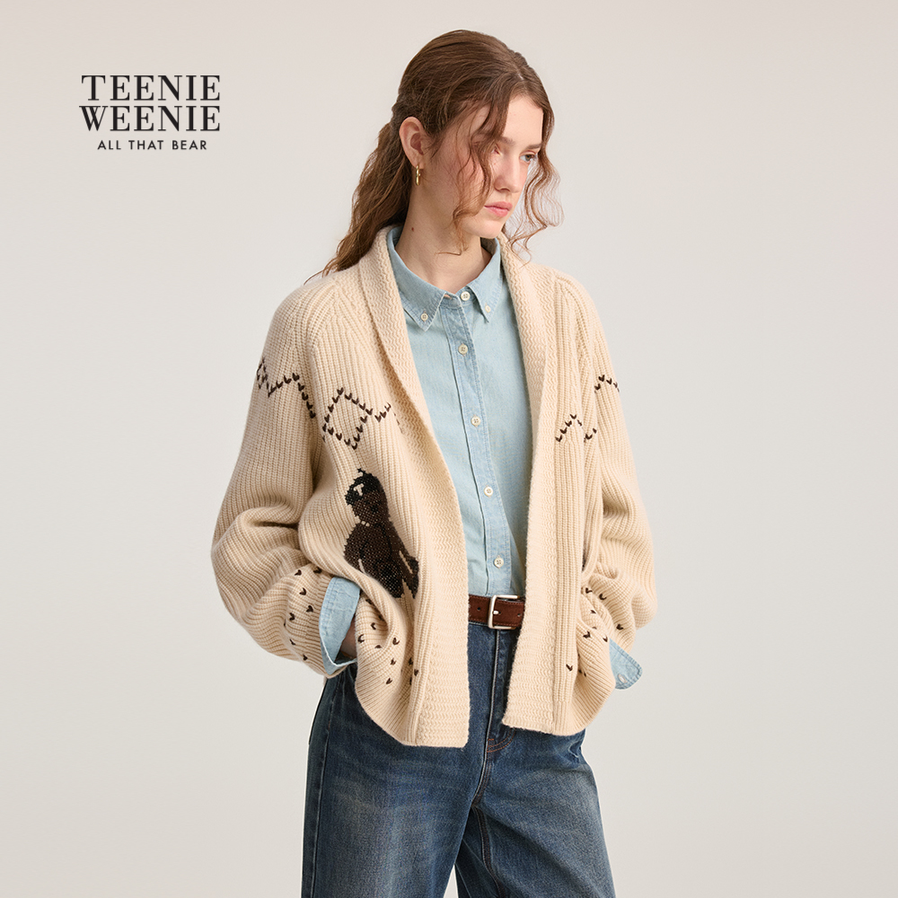 【含绵羊毛】TeenieWeenie小熊女装毛针织衫2025秋季大熊宽松开衫,浙江 嘉兴