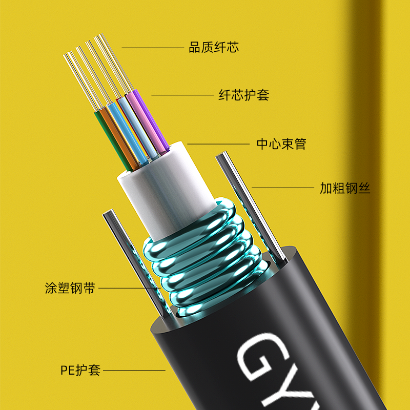 晋航 4芯室外光缆GYXTW-4B1四芯6芯8芯12芯24芯单模铠装光纤线中心束管式光纤光缆6芯8芯加铠电信级监控光纤