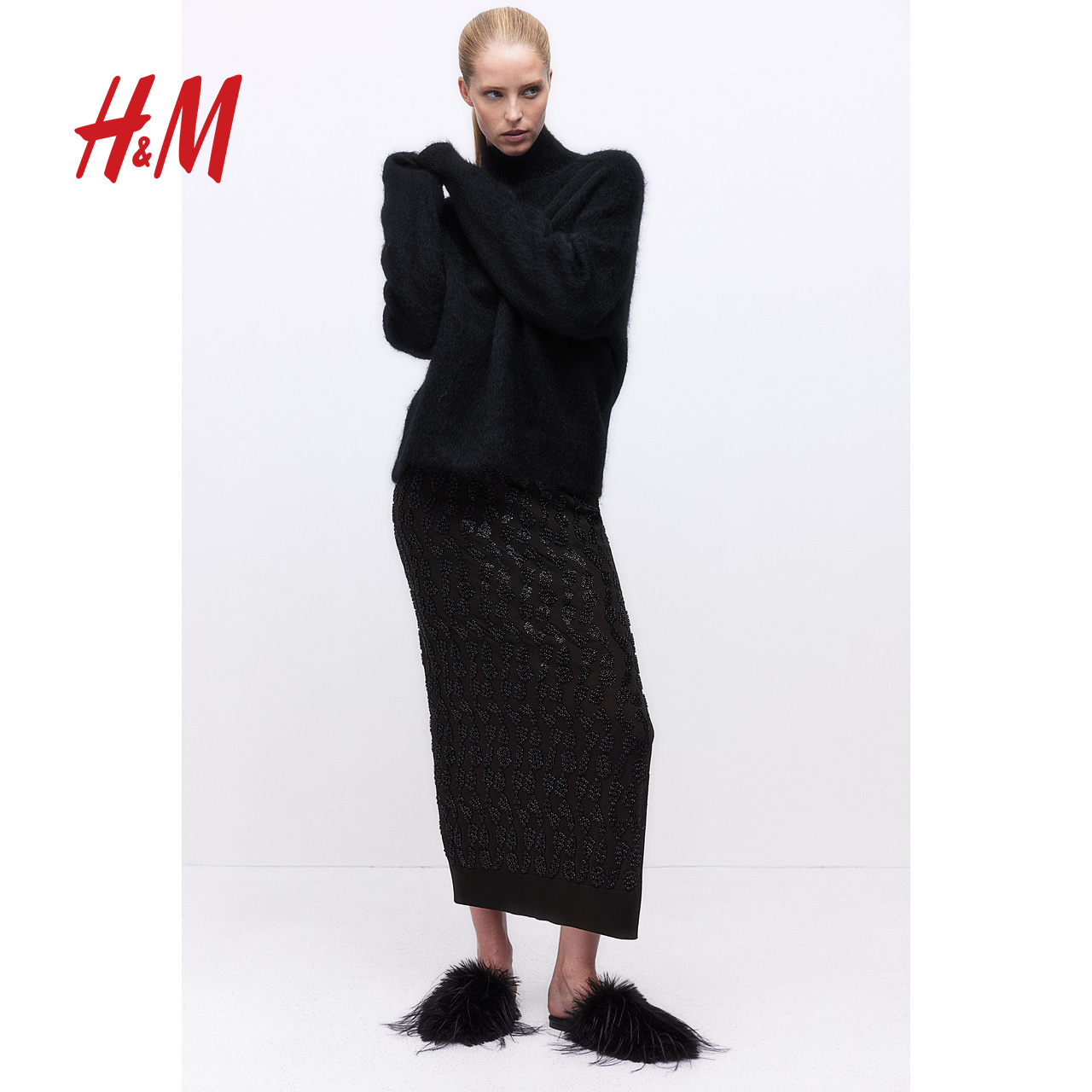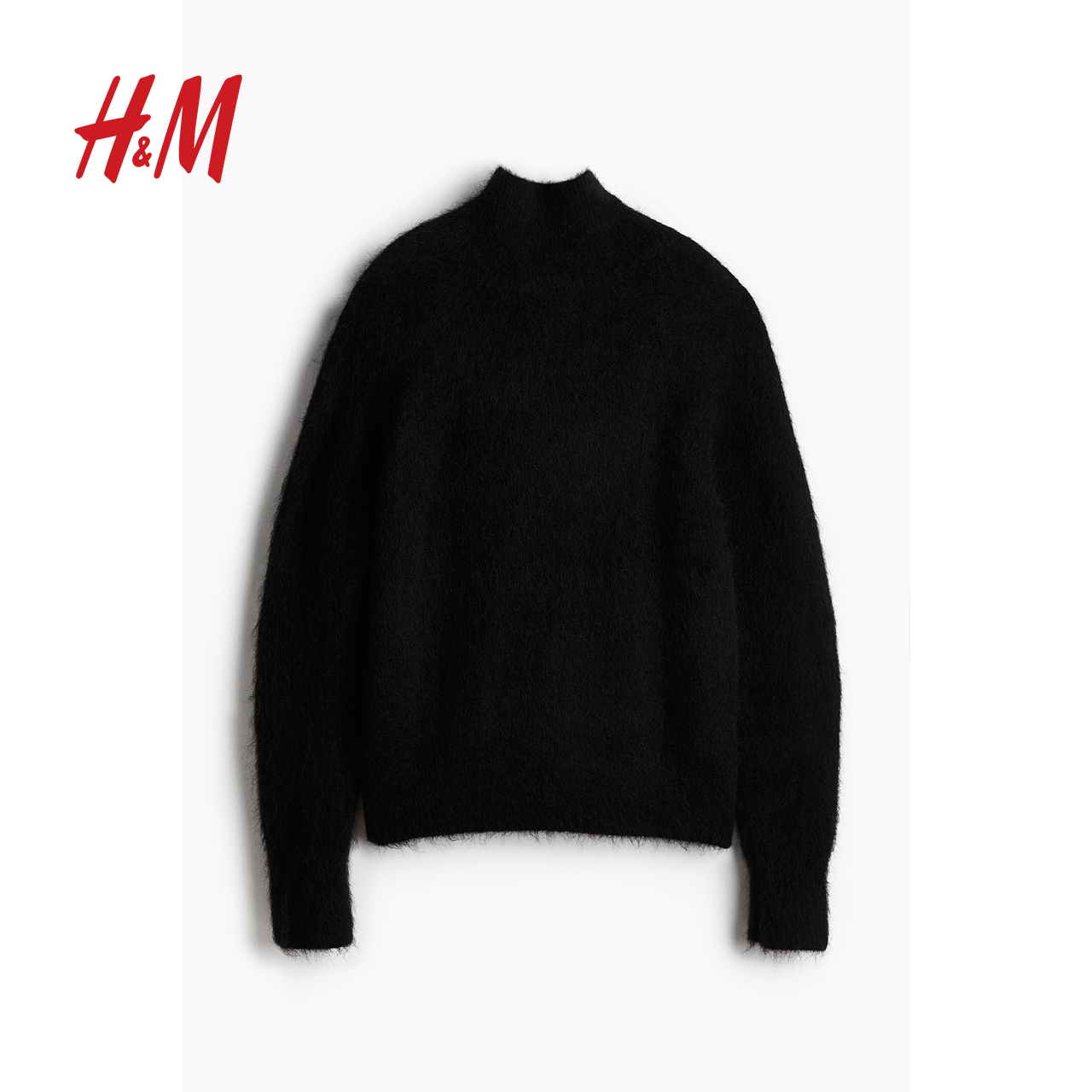 HM秋季女装时尚休闲马海毛混纺高领套衫1248342