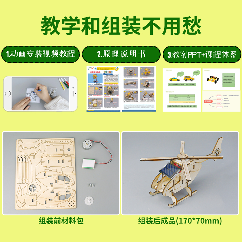 科技制作小发明太阳能直升机幼儿园科学小实验手工飞机作品材料包