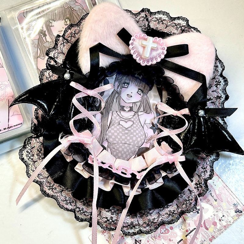 粉色兔耳蕾丝卡套拍立得咕卡配原神小卡痛包diy材料三寸成品谷美,广东 东莞