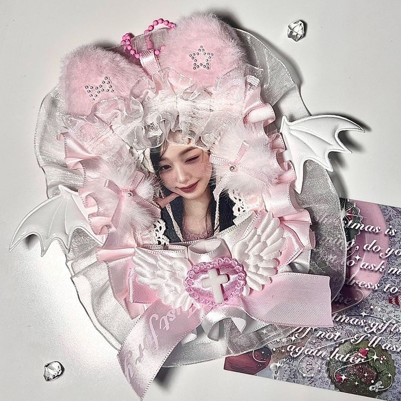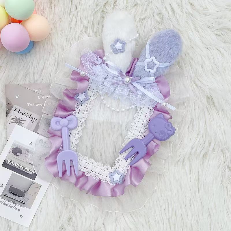 粉色兔耳蕾丝卡套拍立得咕卡配原神小卡痛包diy材料三寸成品谷美