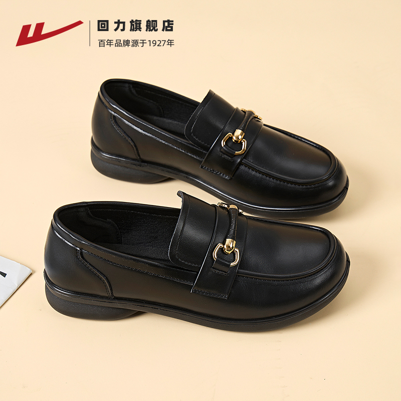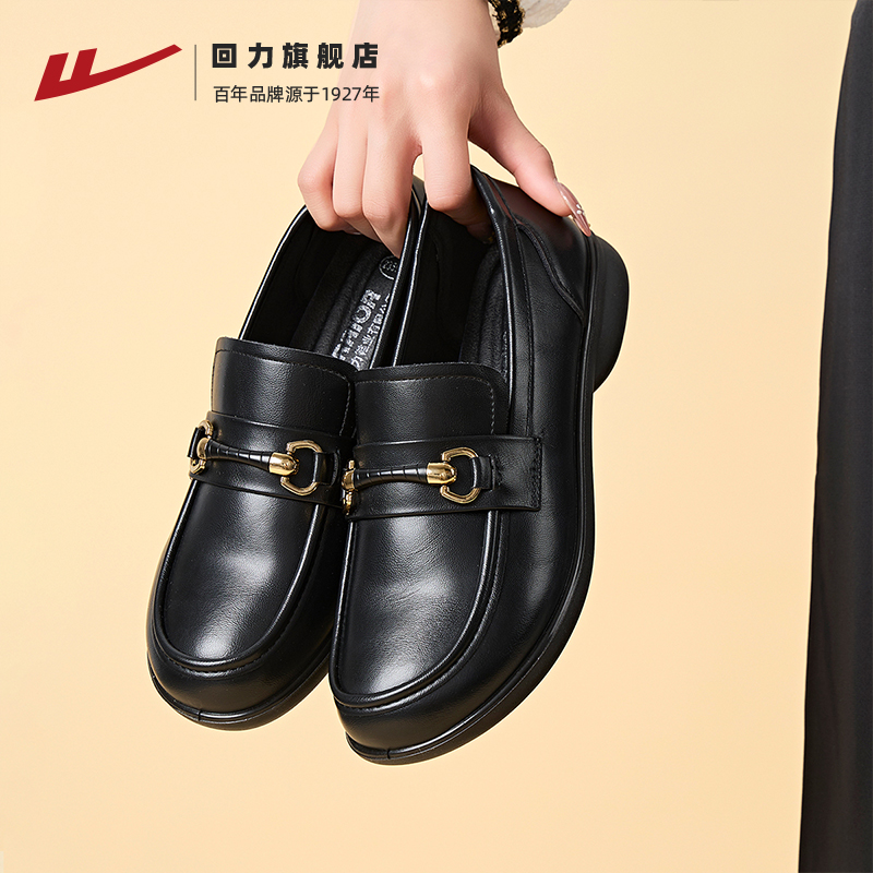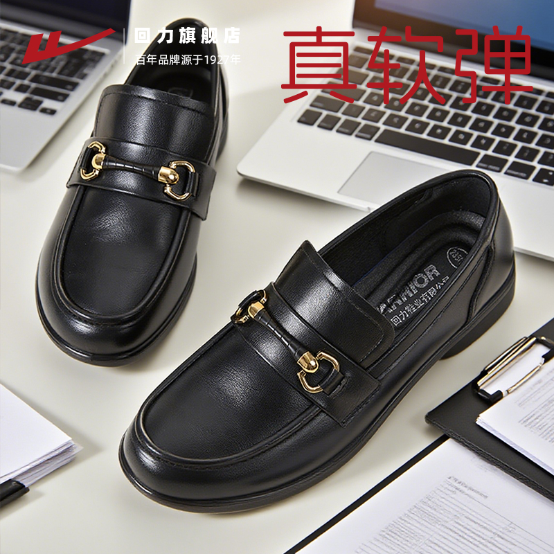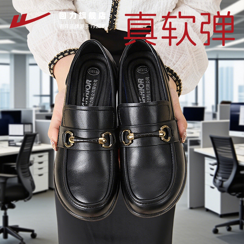 回力女鞋秋季商务工作鞋通勤单鞋舒适软底一脚蹬小皮鞋休闲乐福鞋