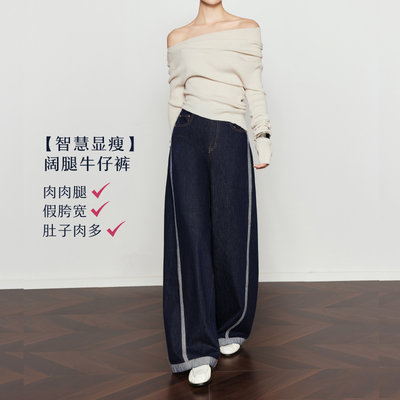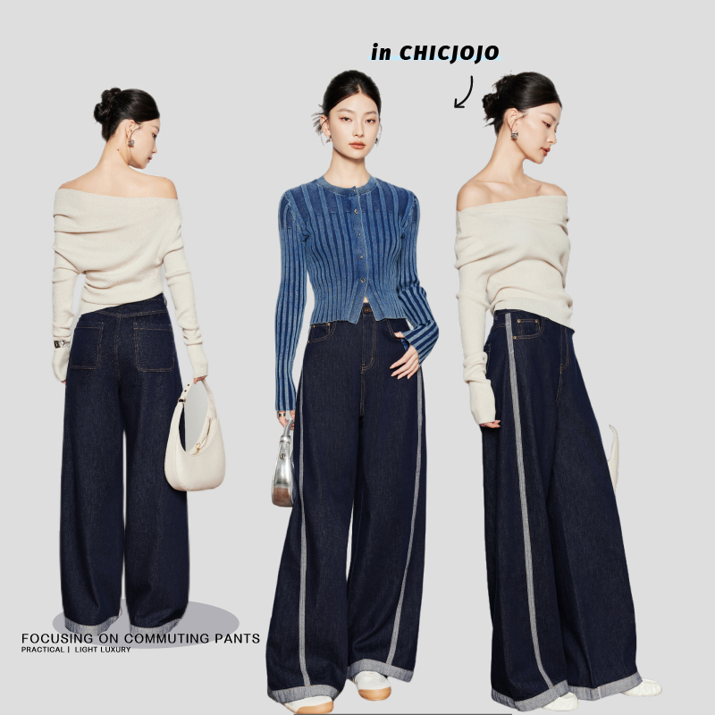 【解构艺术家】CHICJOJO阔腿牛仔裤女25秋高腰宽松时尚休闲裤,山东 济南