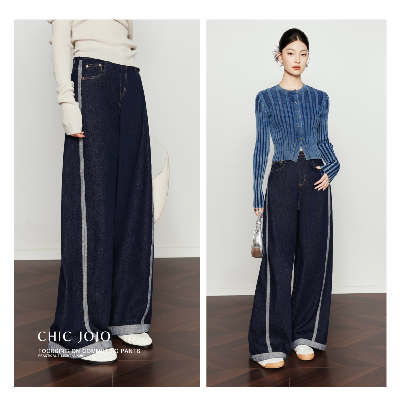 【解构艺术家】CHICJOJO阔腿牛仔裤女25秋高腰宽松时尚休闲裤