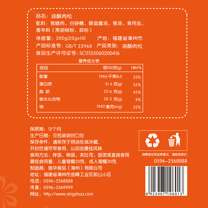 信华食品油酥肉松200g纯猪肉松儿童营养辅食零食贝贝早餐无添加,福建 漳州
