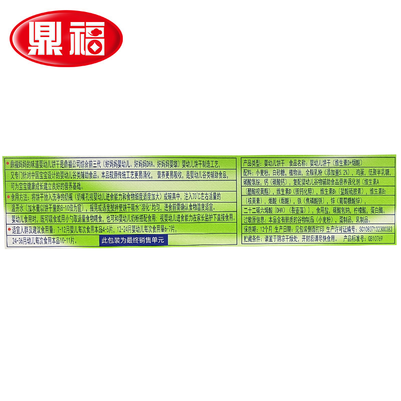 鼎福妈妈的味道钙奶饼干245g*6盒 好妈妈婴幼儿辅食宝宝营养零食,山东 青岛