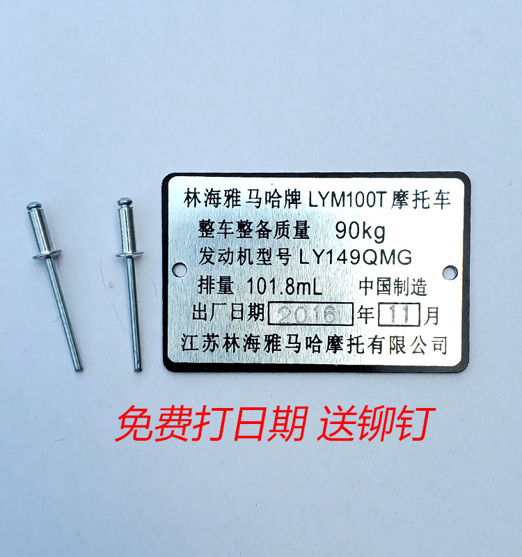 适用雅马哈巧格ZY100铭牌车架吊牌踏板摩托车铝牌拍下送铆钉,浙江 台州