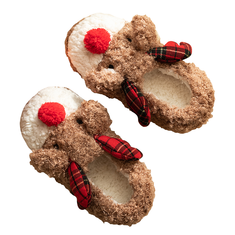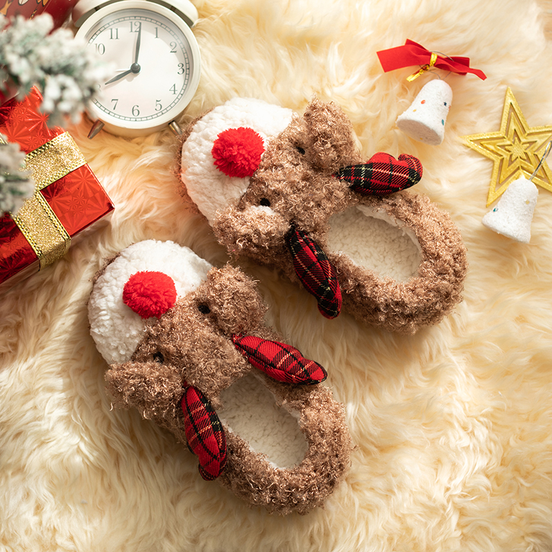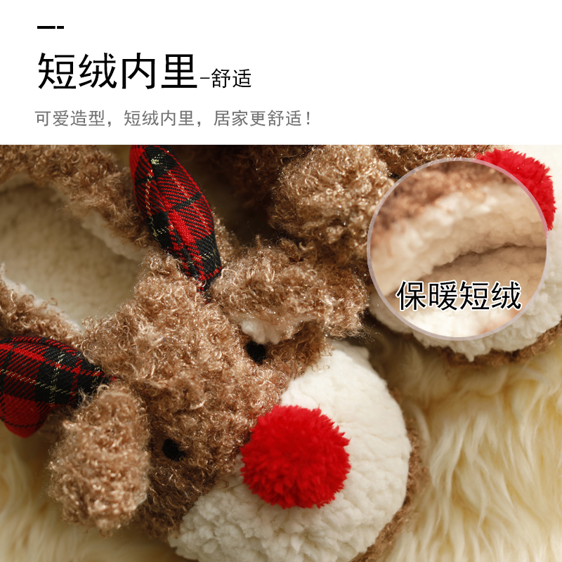 圣诞麋鹿棉拖鞋女冬包跟ins潮居家鞋可爱防滑保暖卡通毛毛绒棉鞋,江苏 扬州