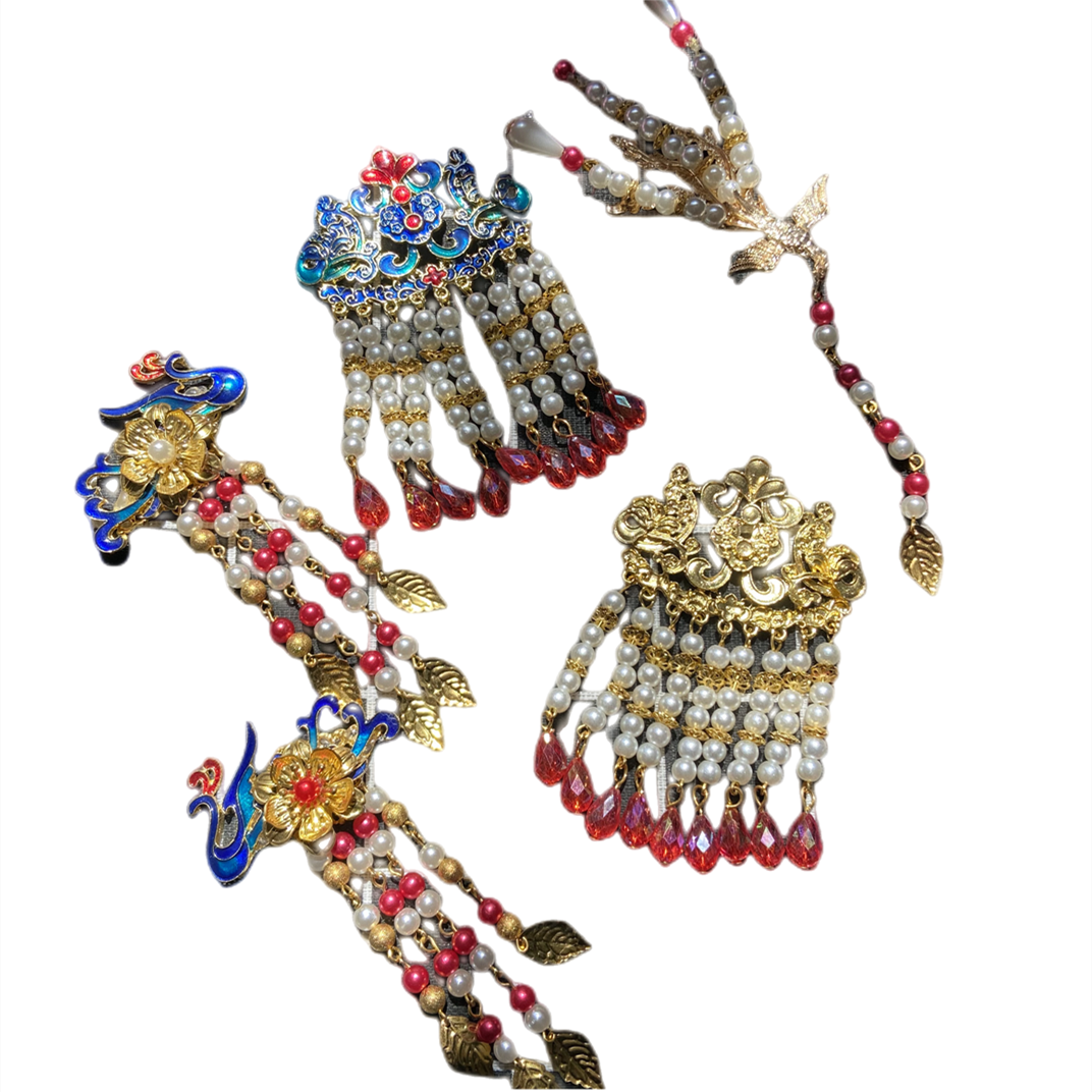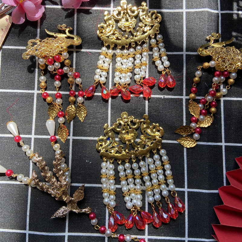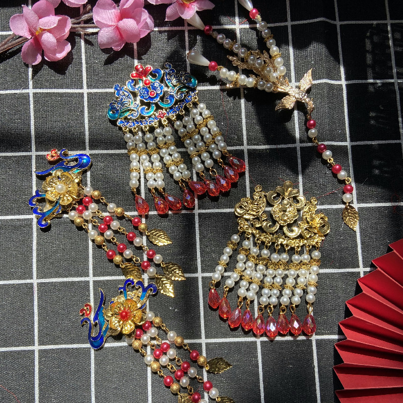 新娘秀禾长柄团扇半成品流苏挂饰穗子吊坠景泰蓝凤凰流苏装饰材料,山西 阳泉