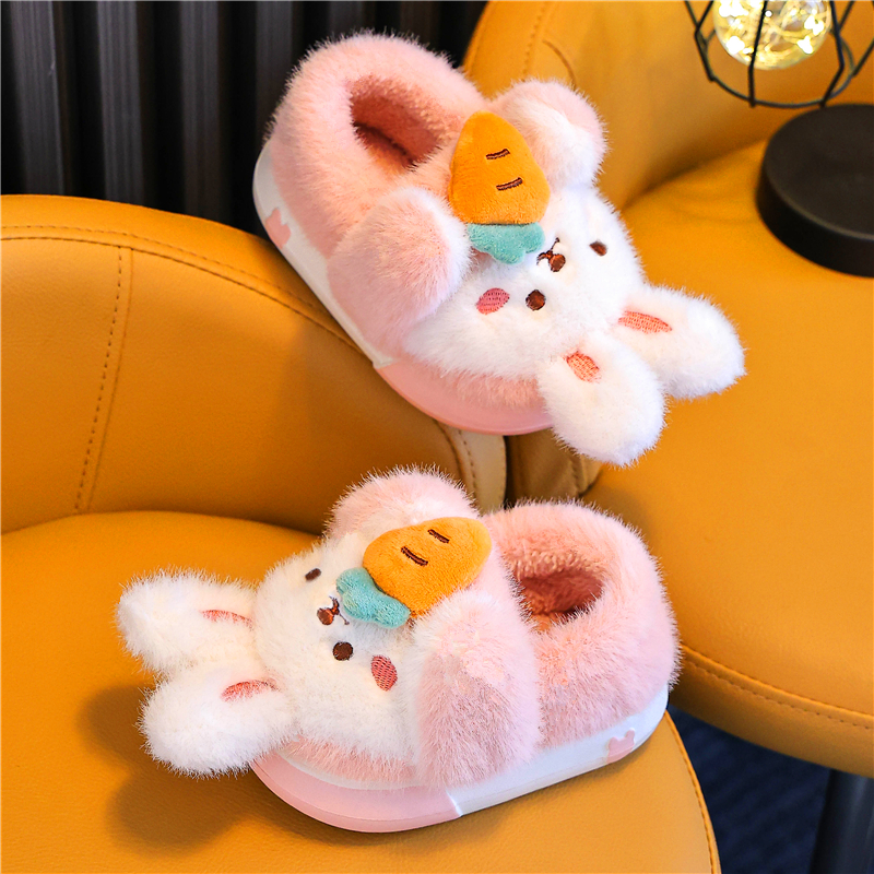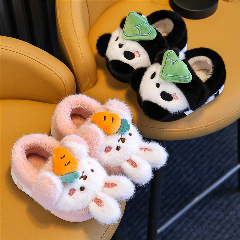 儿童棉拖鞋男童冬季保暖加厚加绒小女孩毛毛绒居家包跟男宝宝棉鞋