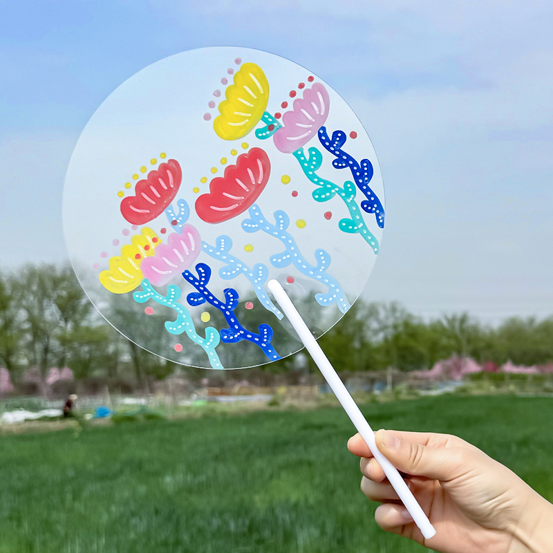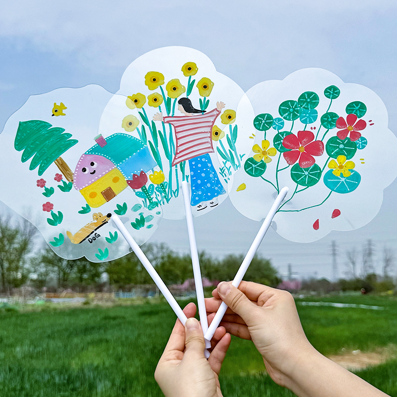 透明涂鸦一字柄扇子diy材料 儿童节礼物创意手工pvc扇幼儿园涂色,浙江 金华