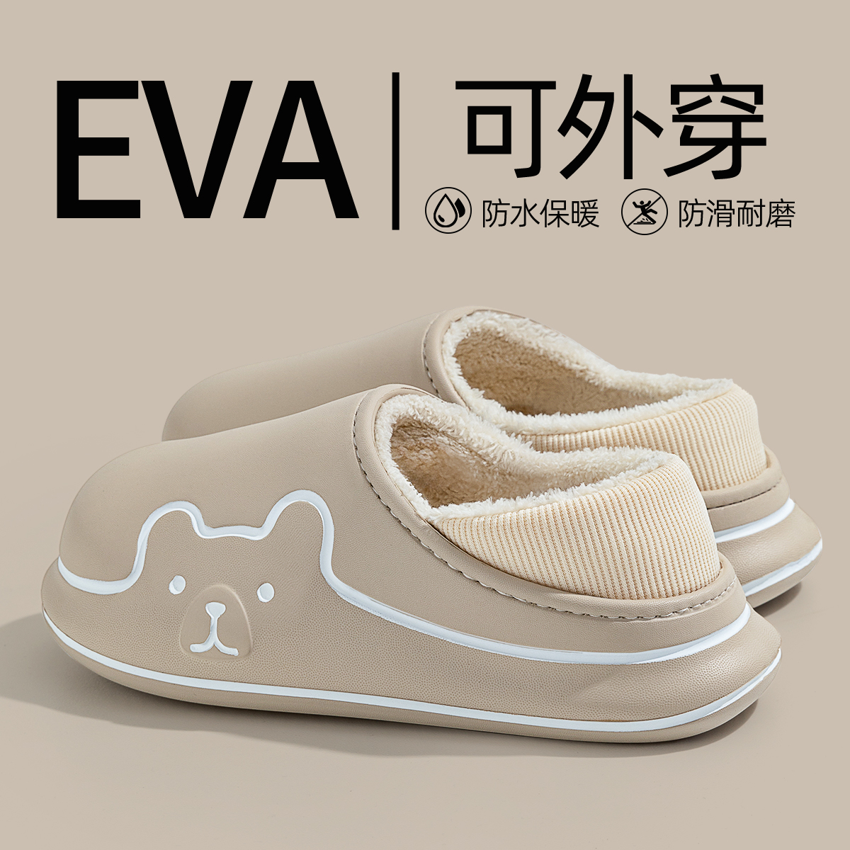 踩屎感棉拖鞋女士冬季防水室内居家新款防滑包跟男款棉鞋冬天外穿,浙江 绍兴