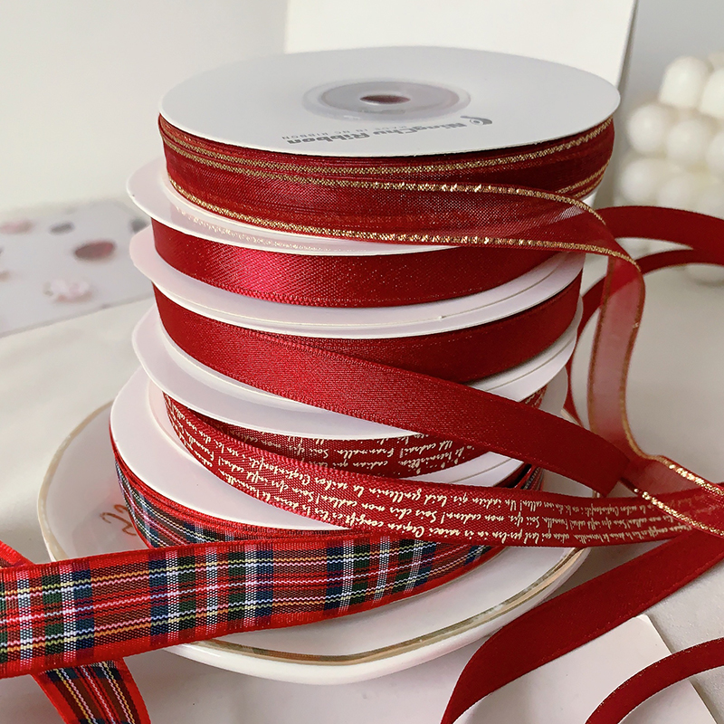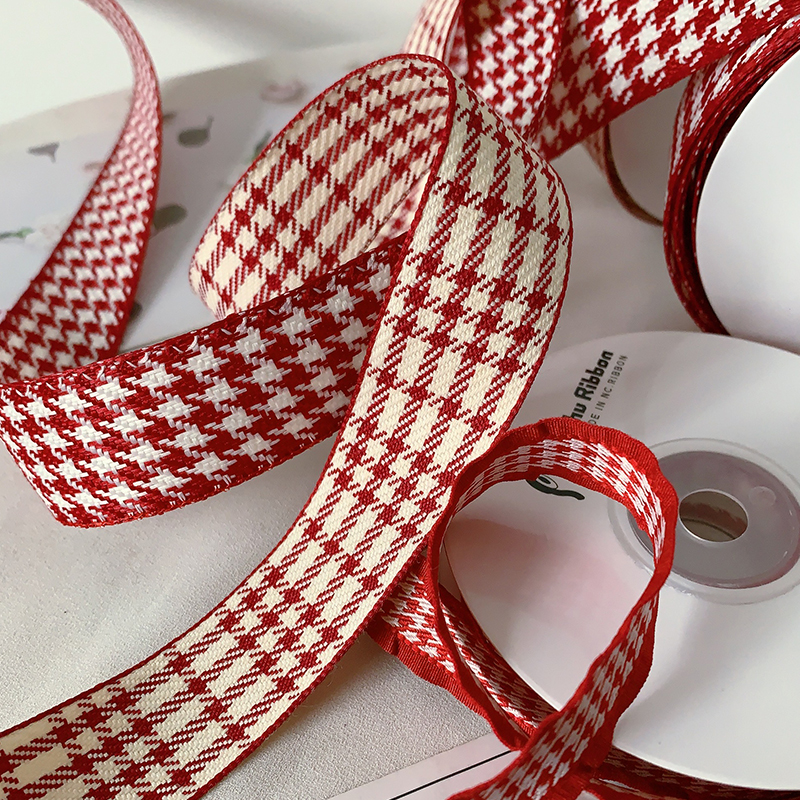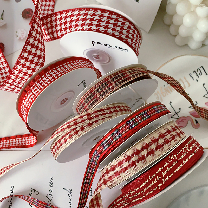 酒红新年格子带丝带花束烘焙diy手工花艺包装材料织带彩带英伦风,浙江 金华