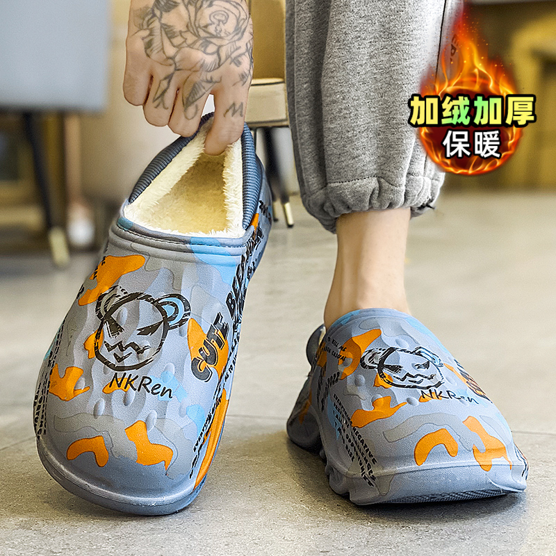 棉拖鞋男款冬季加绒保暖室内居家包跟棉鞋青少年防水防滑大码拖鞋,福建 泉州