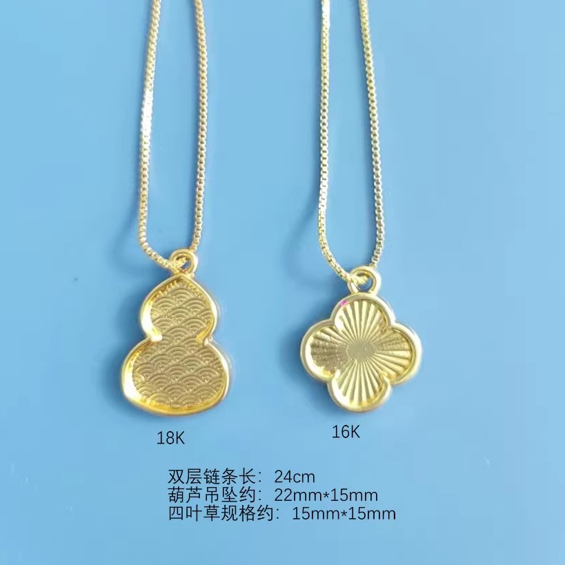 宋锦香云纱螺钿点翠DIY项链新中式葫芦四叶草项链-非成品,江苏 苏州