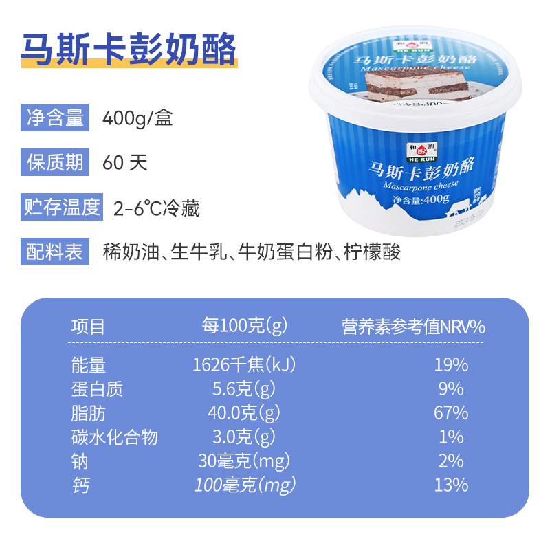 和润马斯卡彭奶酪提拉米苏奶油芝士马斯卡膨布尼烘焙材料,上海