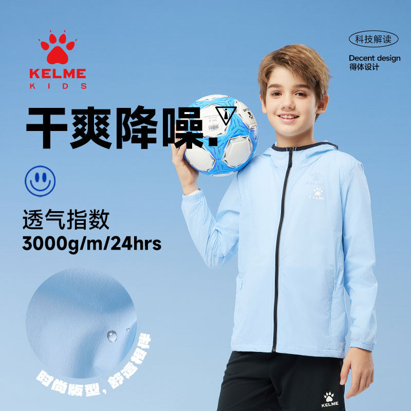KELME KIDS儿童防晒衣夏防紫外线透气薄款皮肤衣户外运动跑步外套,福建 泉州
