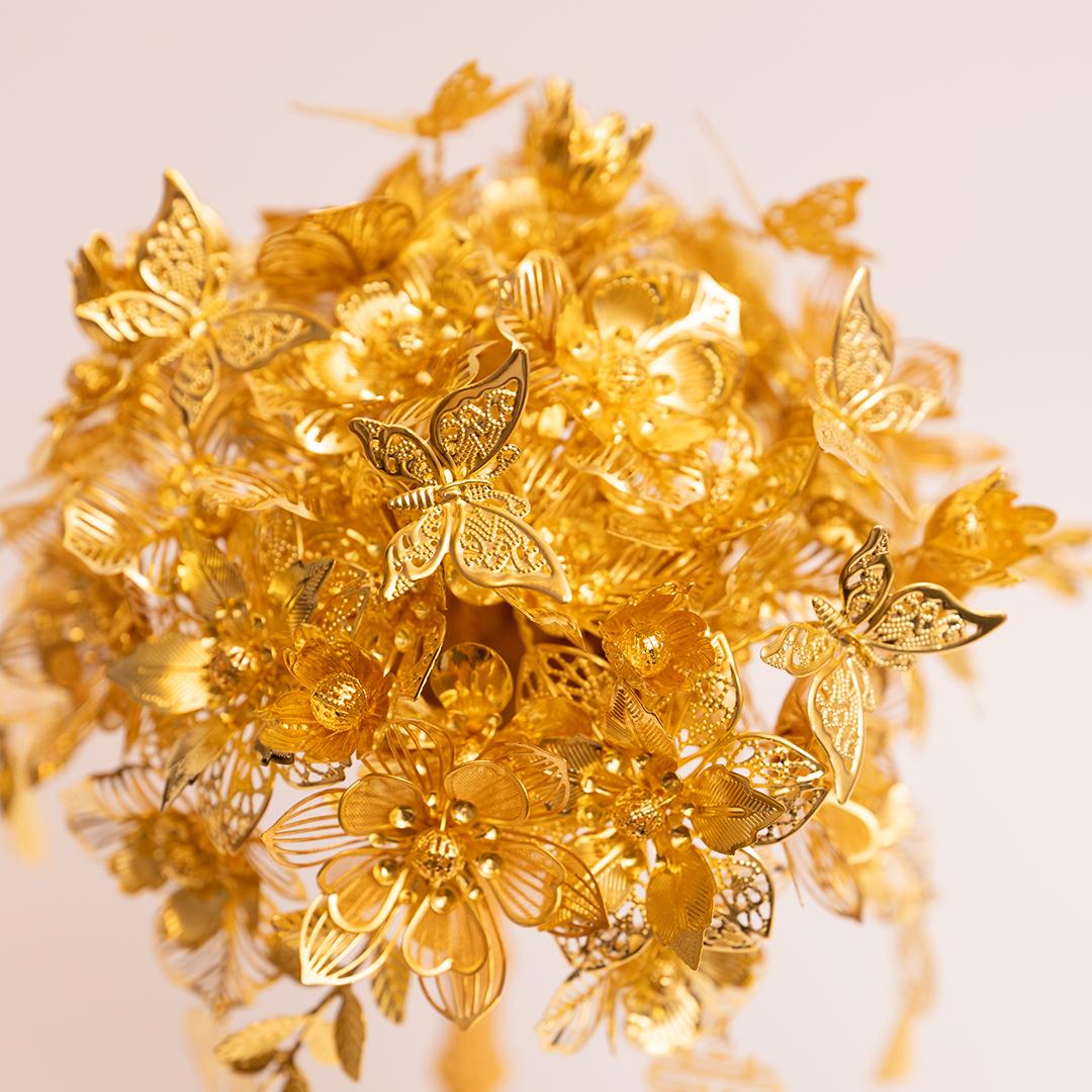 金色金属手捧花新娘结婚diy材料包婚礼秀禾服婚纱花束权杖礼物,湖南 邵阳