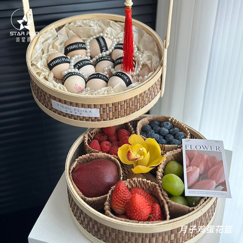 月子鸡蛋手提花篮diy材料包满月生日鲜花花束包装盒礼盒花艺花盒,浙江 金华