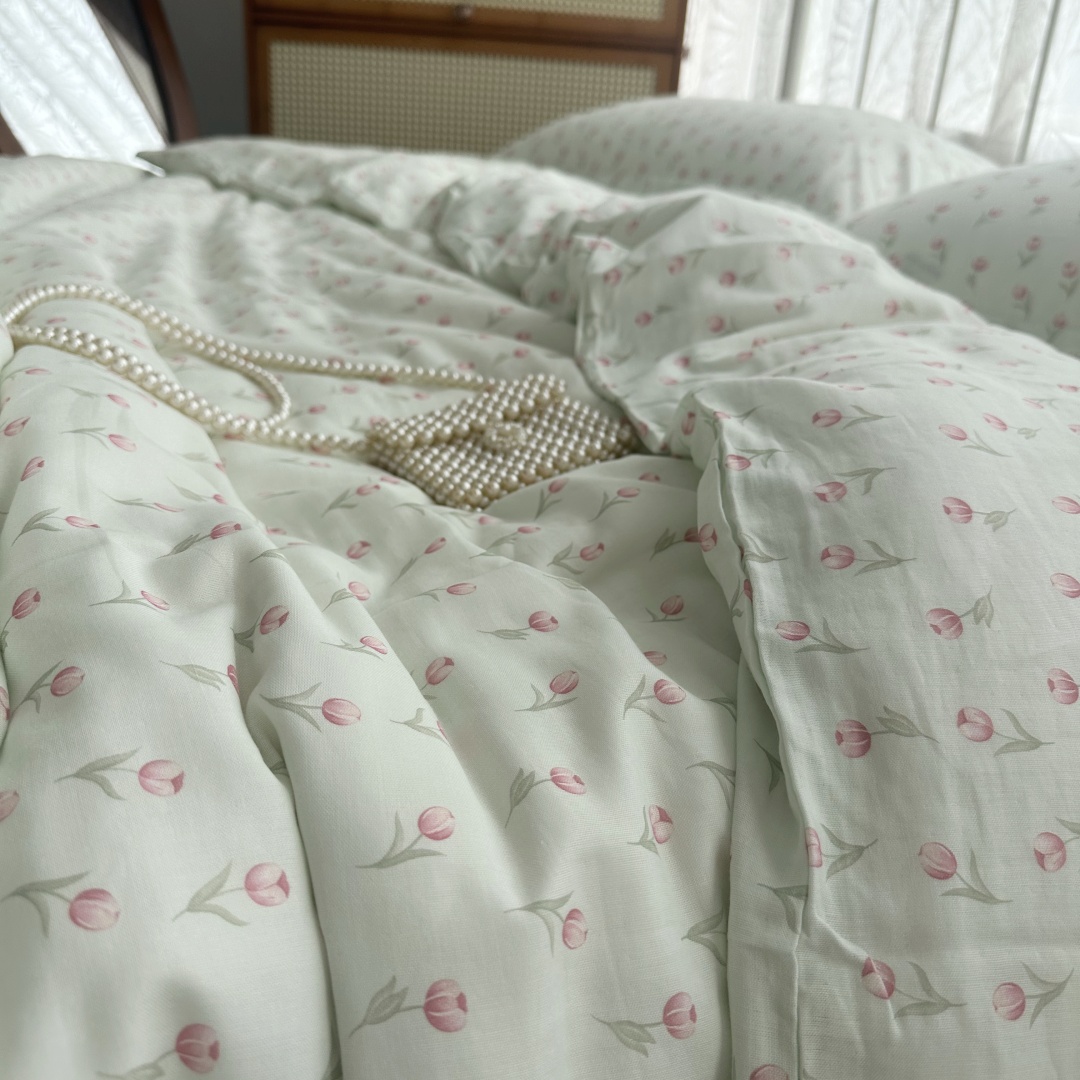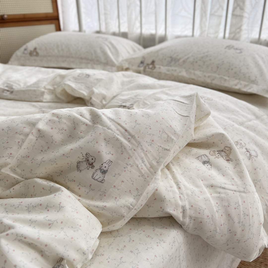 A级母婴全棉双层纱布四件套 田园小清新软糯纱布床单单件被套枕套,山东 潍坊