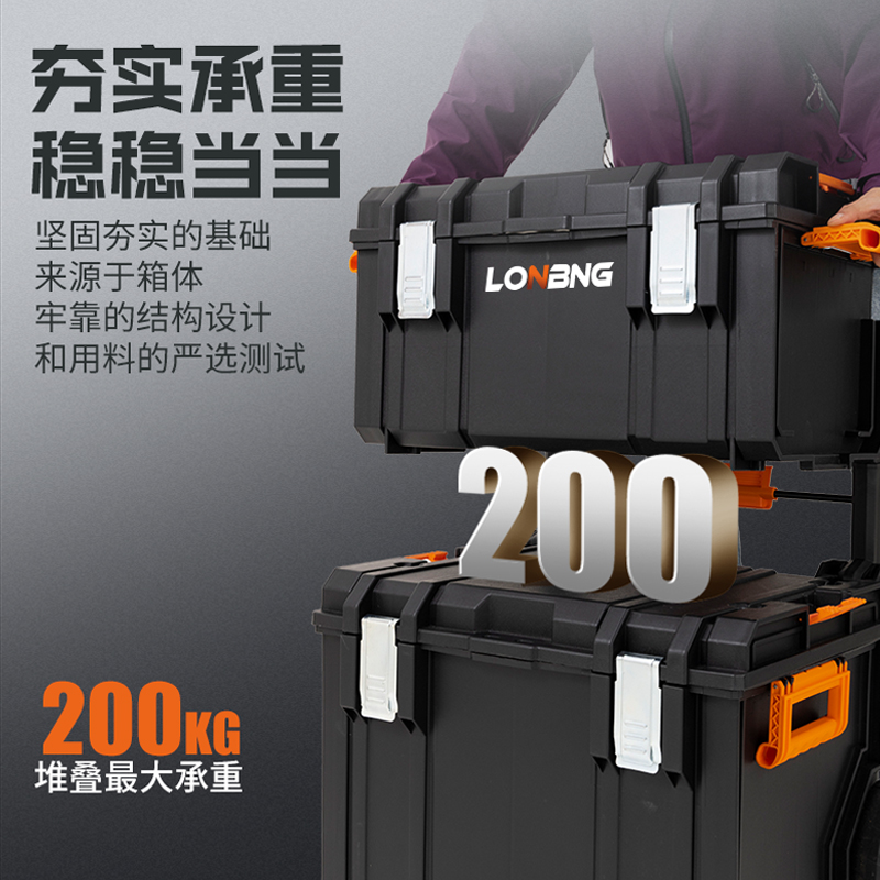 龙邦三层折叠工具箱收纳盒多功能五金堆叠组合式拉杆箱工具盒空盒