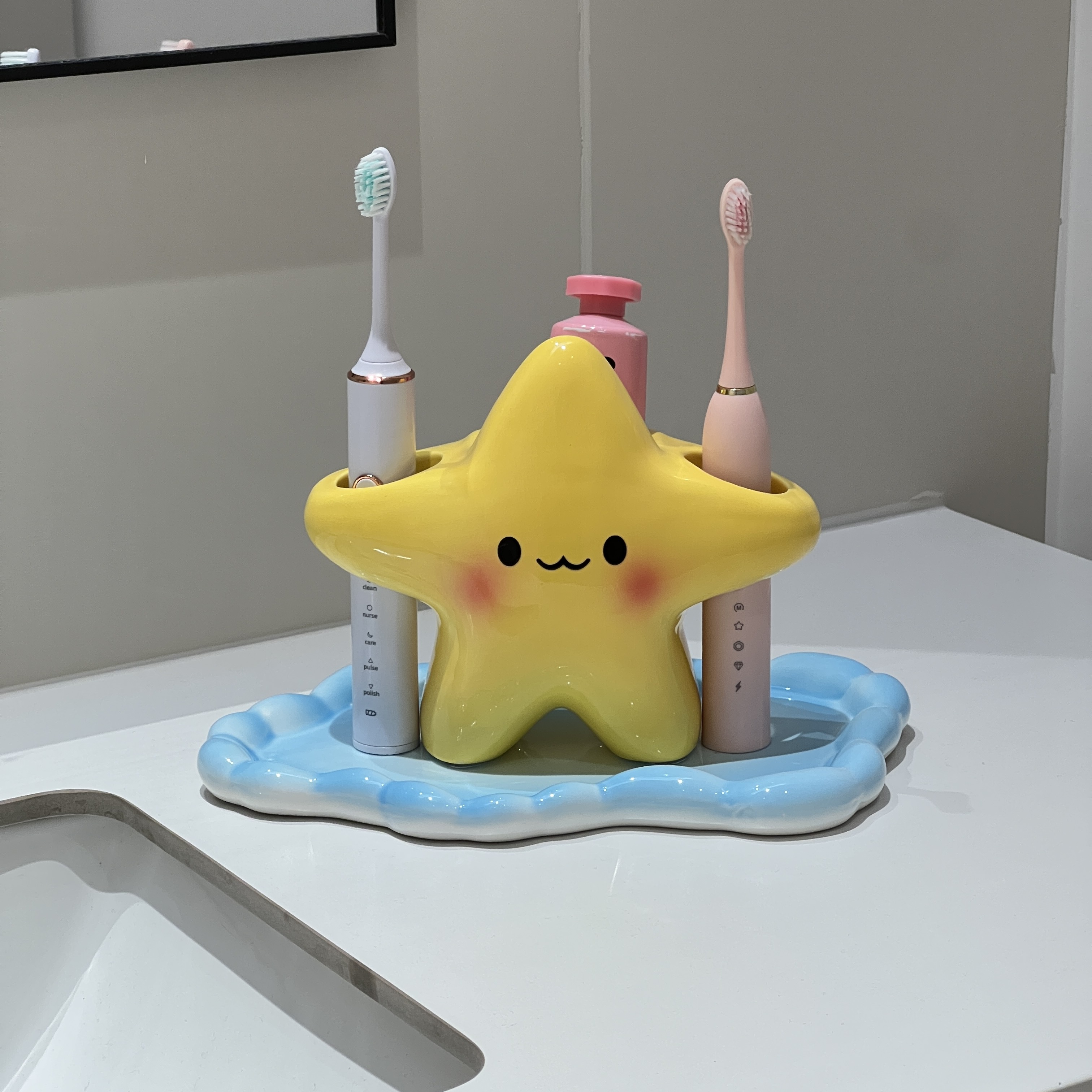 星星牙刷架卫生间家用牙具收纳筒手电动牙刷底座支架陶瓷置物架盘,广东 潮州