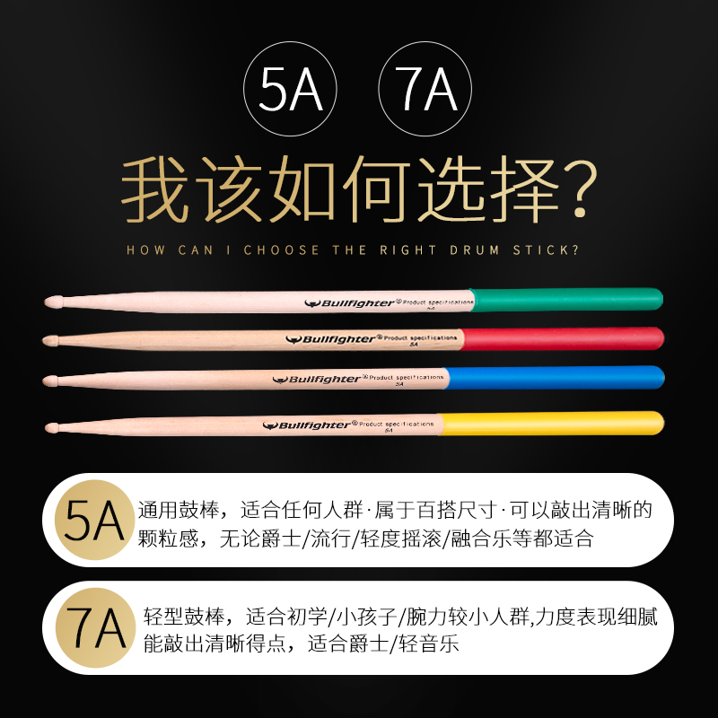 斗牛士枫木鼓棒5A 7A架子鼓防滑鼓槌儿童爵士鼓通用实木专业鼓棒
