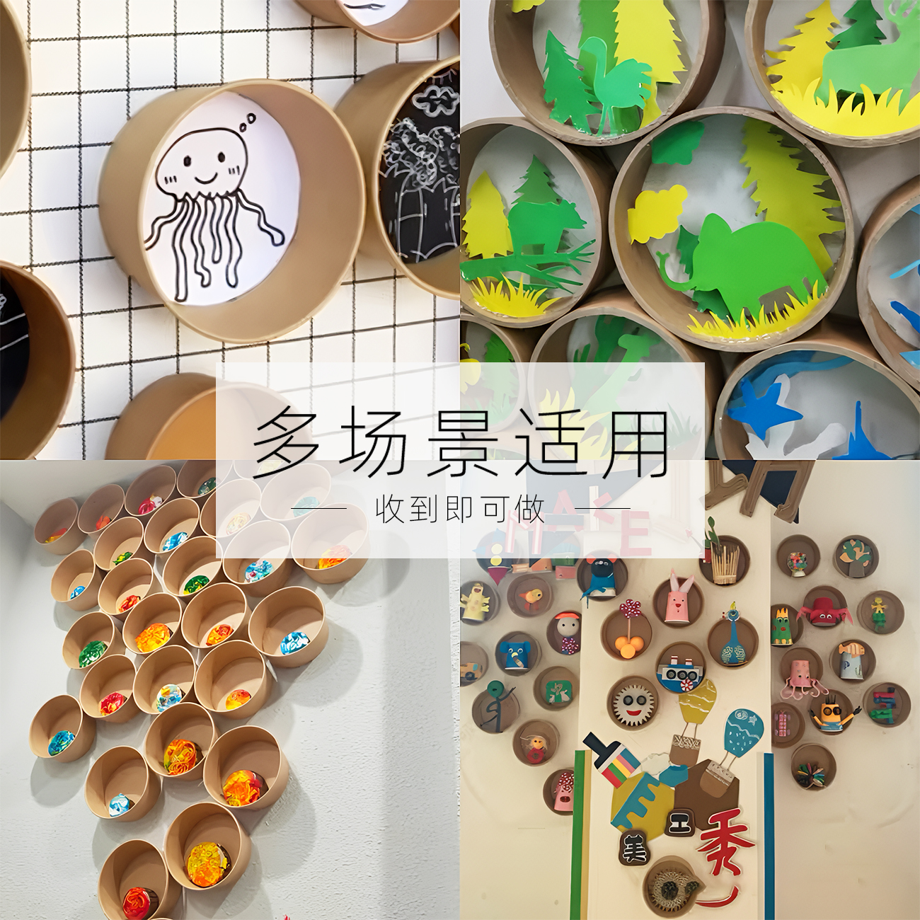 一次性牛皮纸打包盒幼儿园建构区搭建材料美工区圆形加厚牛皮纸碗