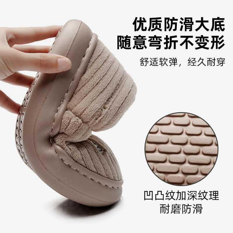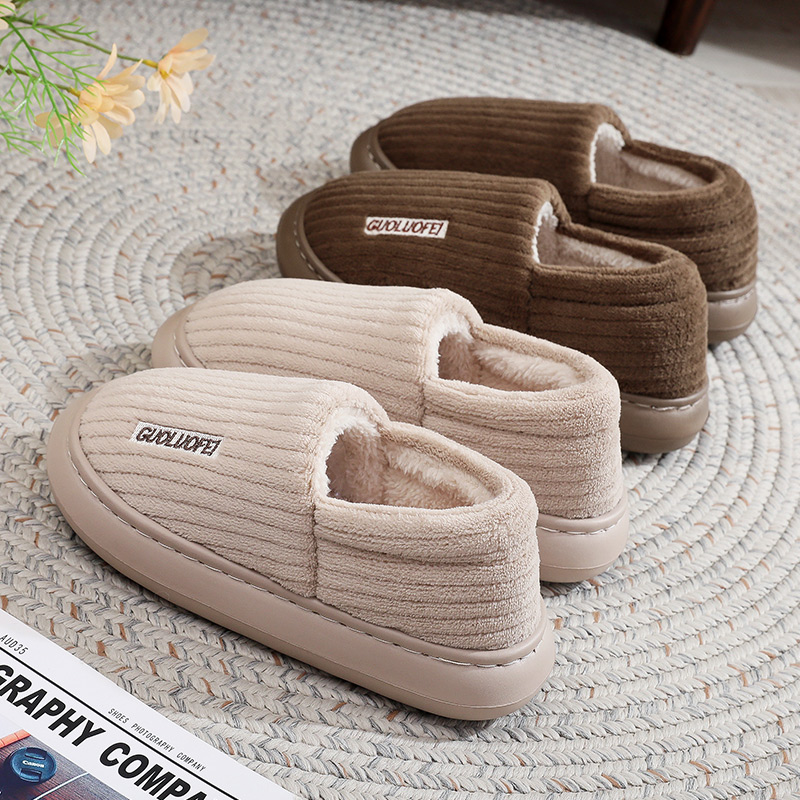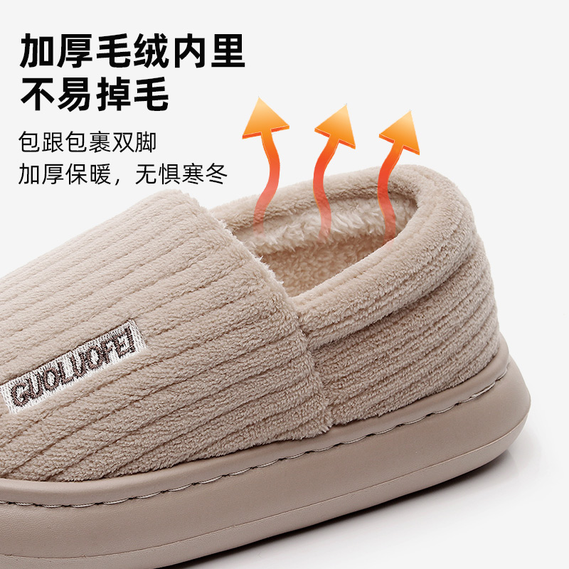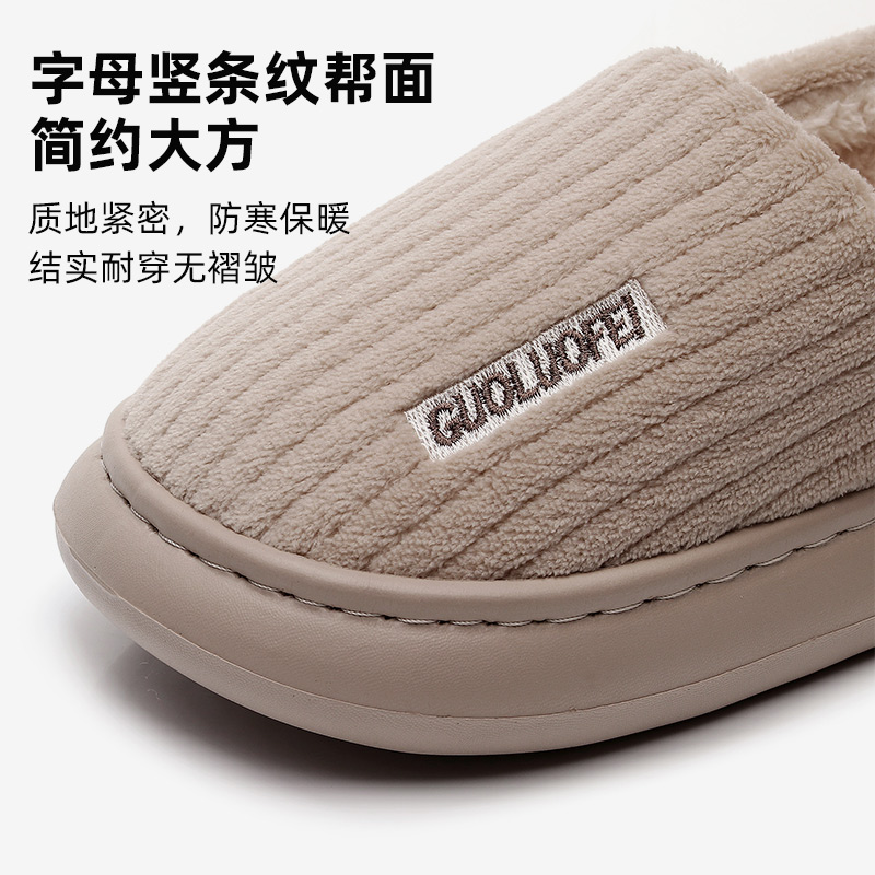 果洛菲冬季字母条纹棉鞋男女室内居家毛绒保暖厚底防滑包跟棉拖鞋,上海