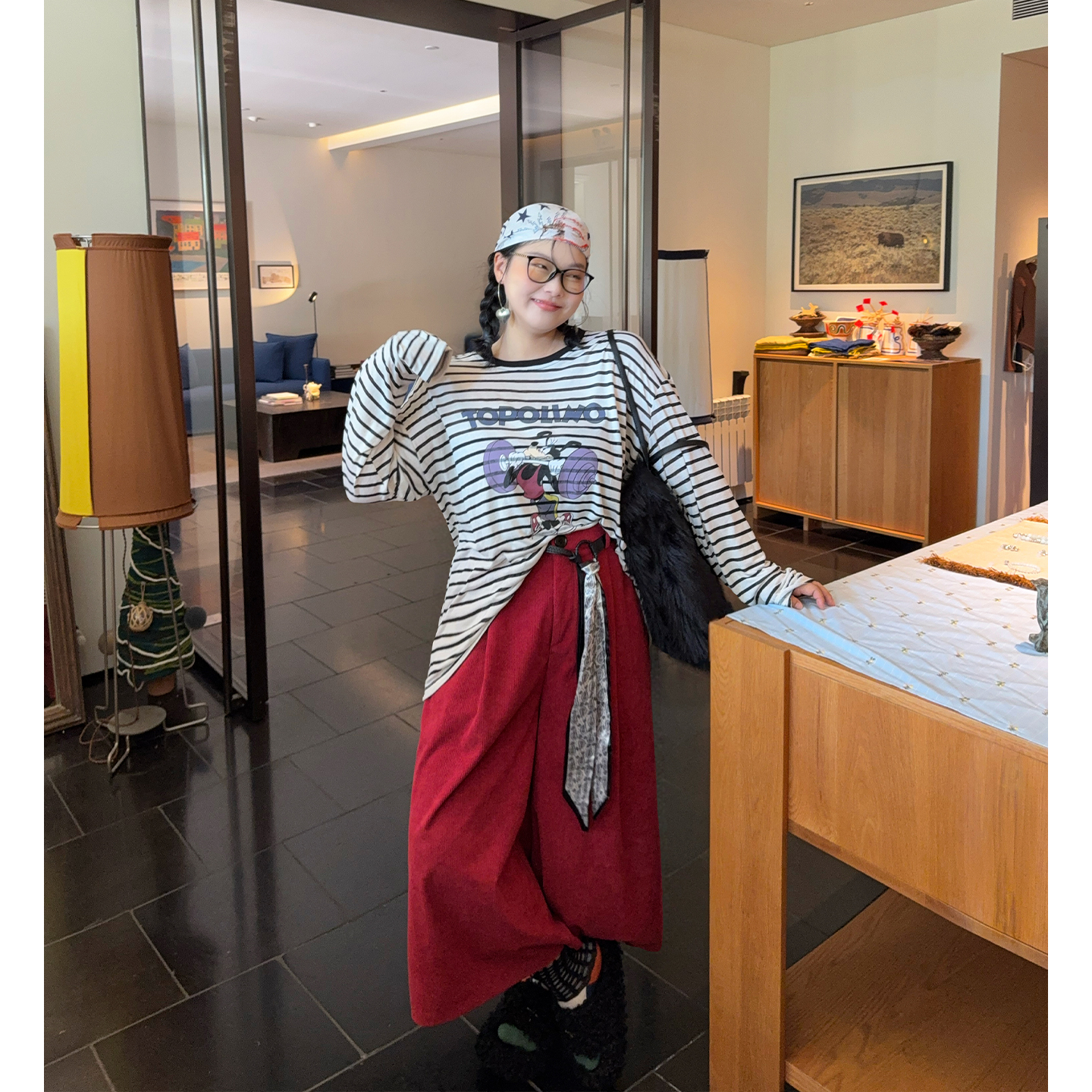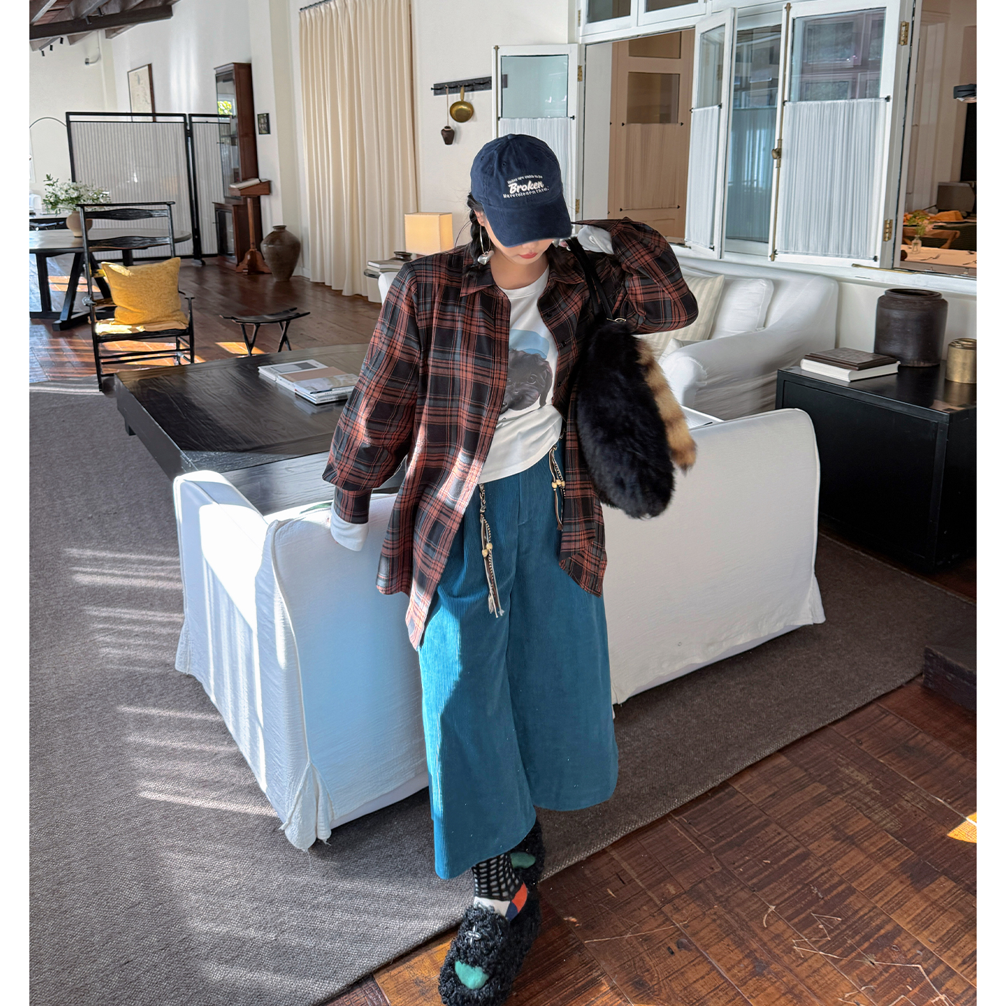 阿周家微胖chao柔垂顺灯芯绒八分裤女大码裤赠送纯手工编织麻花带