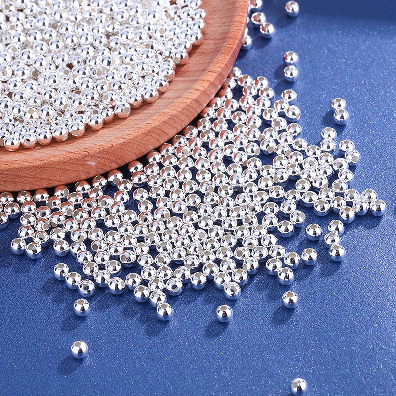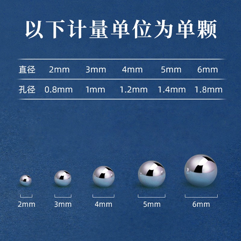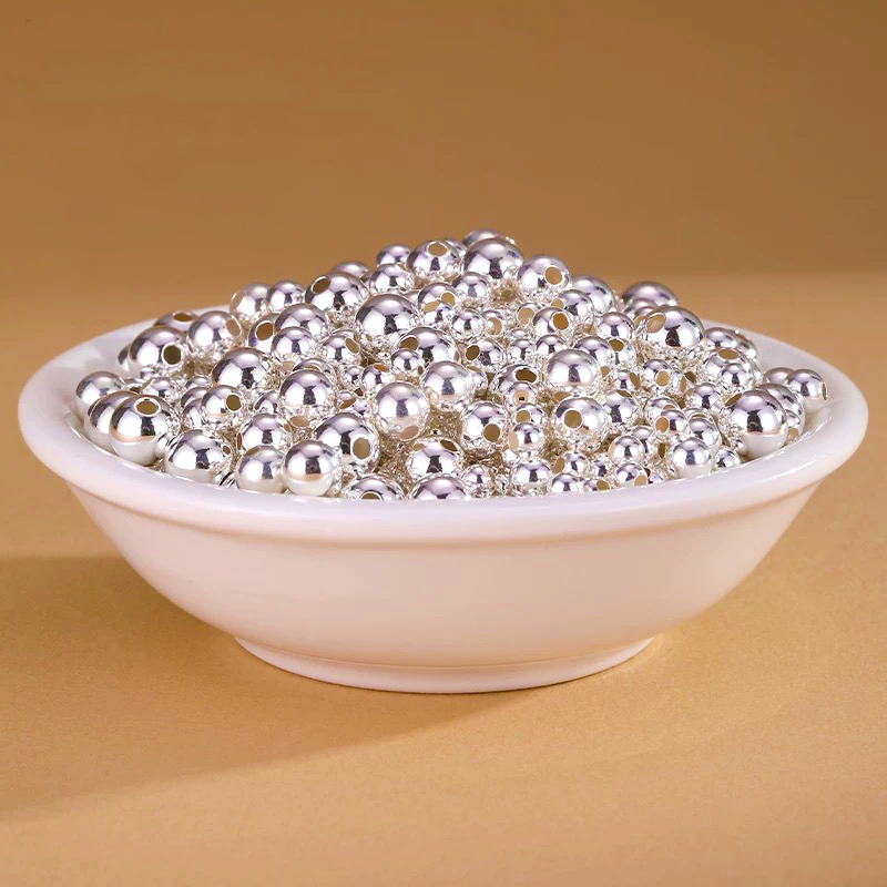铂西欧银楼999足银珠子散珠光珠DIY纯银亮面圆珠编绳配件串珠材料