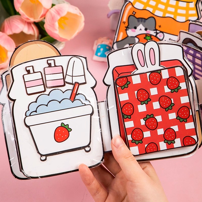 儿童免裁剪猫猫草莓果酱贴纸安静书手工diy材料包幼儿园女孩礼物6