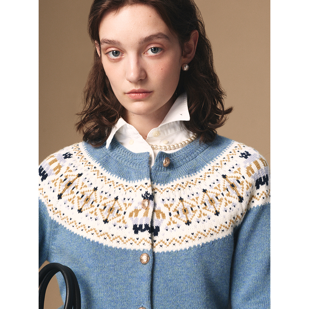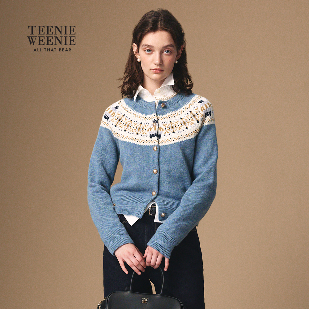 TeenieWeenie小熊女装毛衣2025年秋季新款复古费尔岛提花针织开衫,浙江 嘉兴