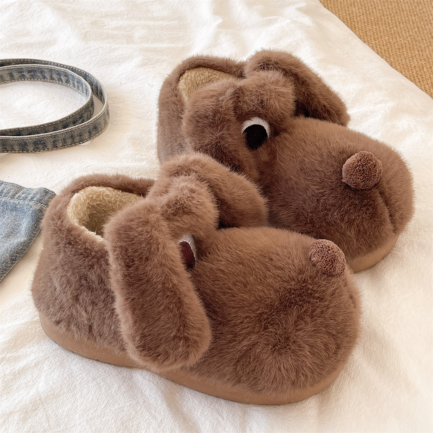 棉拖鞋女冬季包跟防滑厚底外穿棉靴室内居家毛绒保暖可爱小狗棉鞋,浙江 宁波