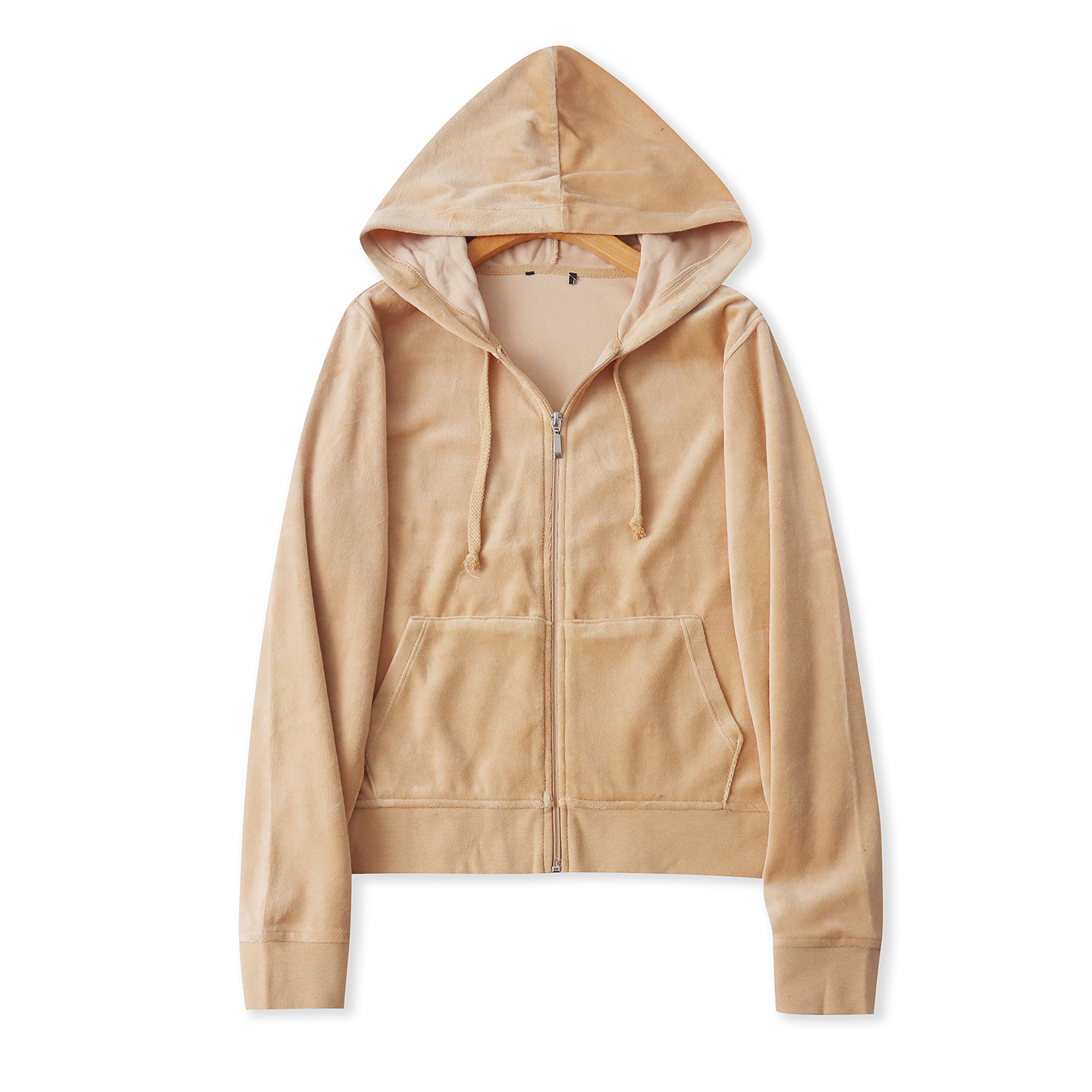 丝绒开衫外套 春秋新款外贸女装连帽领拉链长袖纯色大码卫衣32987,江苏 南通