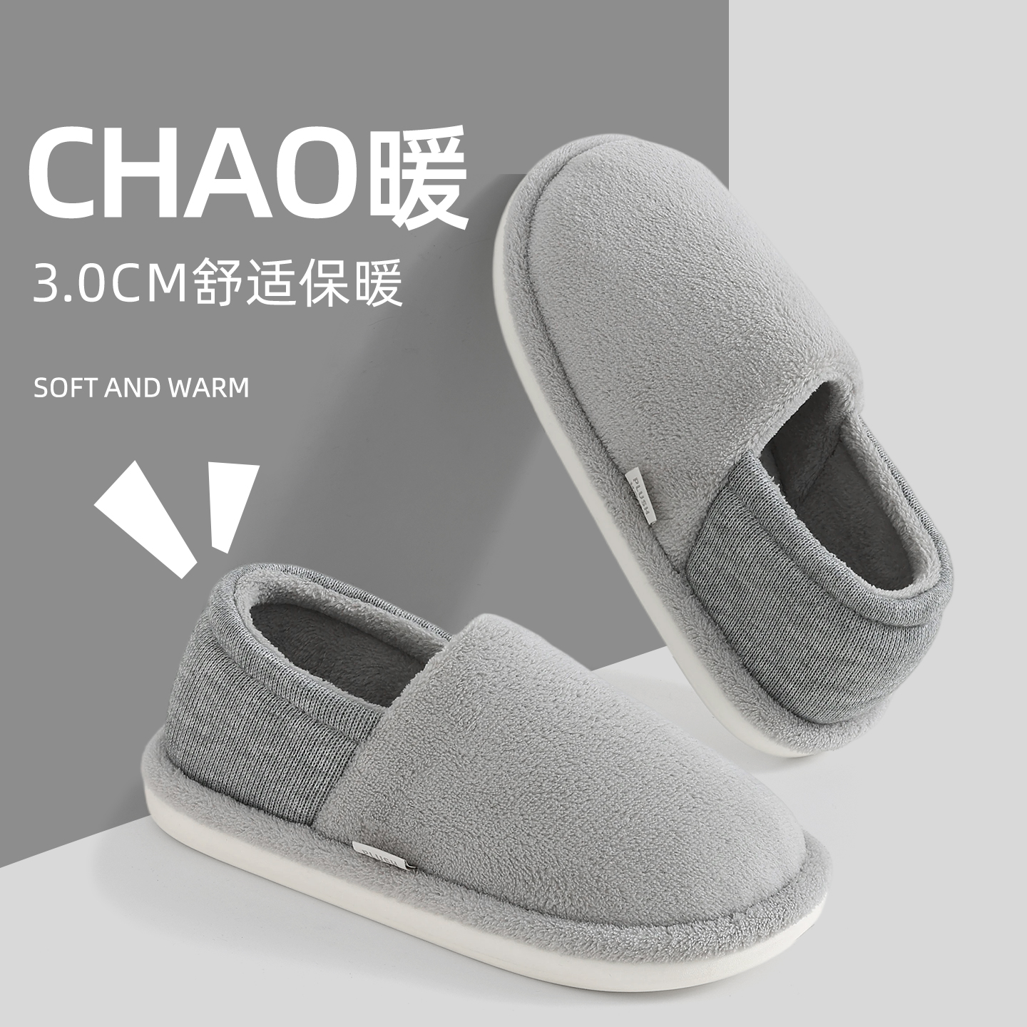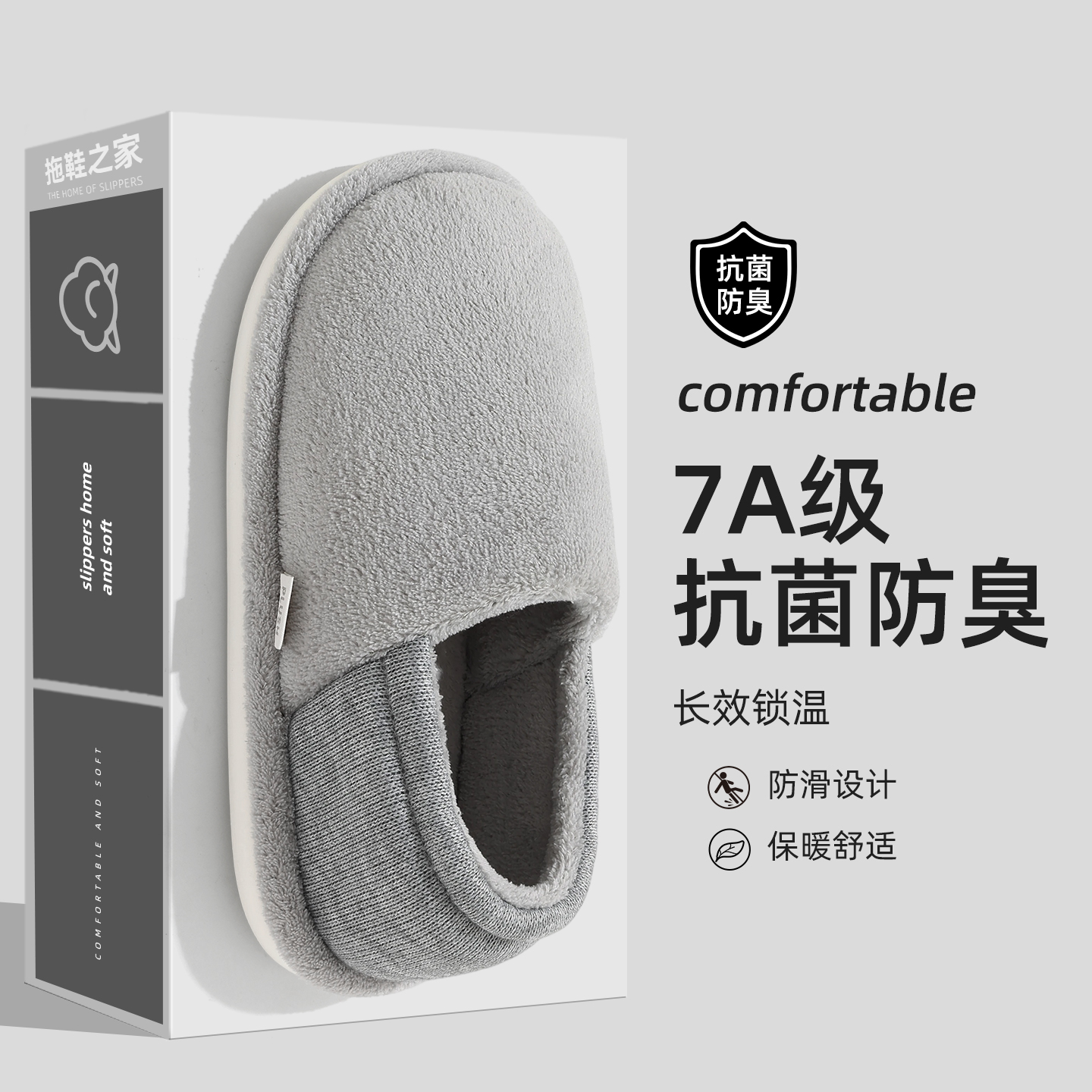 抗菌防臭棉拖鞋男士冬季包跟2025新款室内居家居毛绒保暖棉鞋男款,浙江 金华